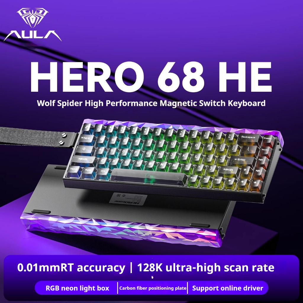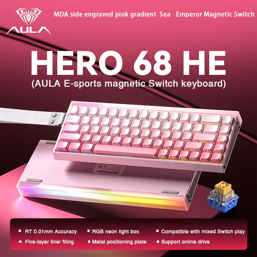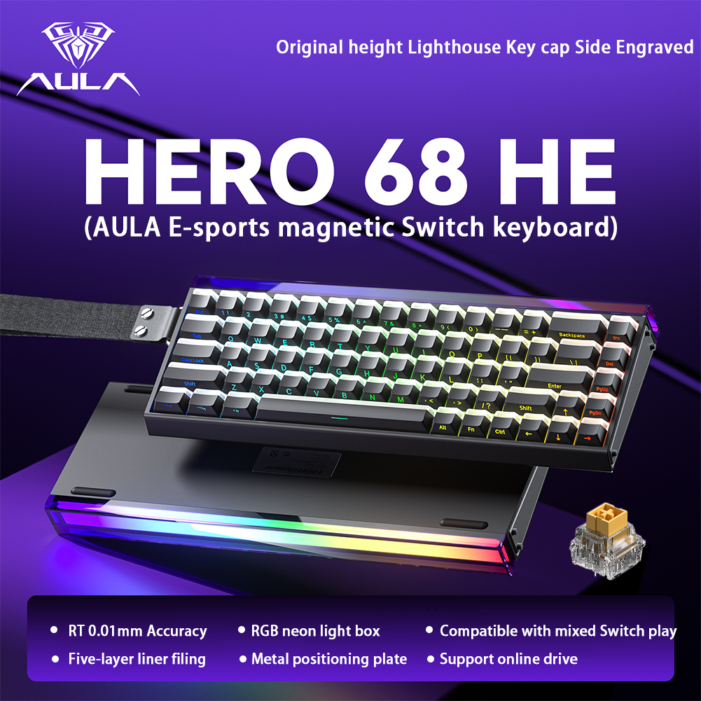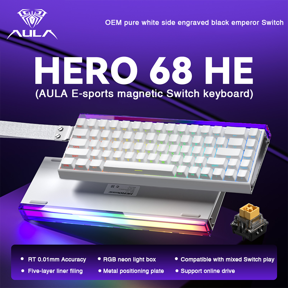 AULA HERO 68HE Magnetic RT Mechanical Keyboard 68Keys 8Khz Wired RGB Pudding Keyboard with Rapid Trigger Hot Swappable Magnetic Switch
