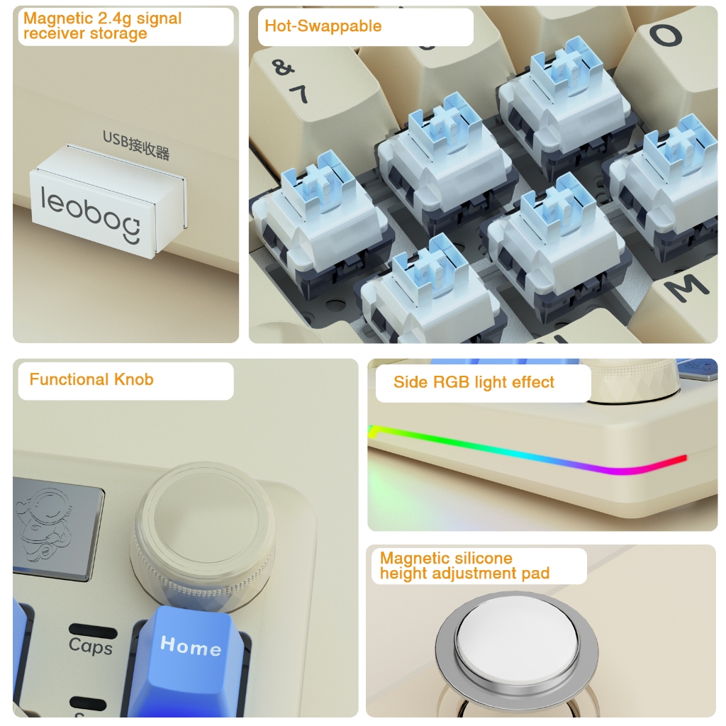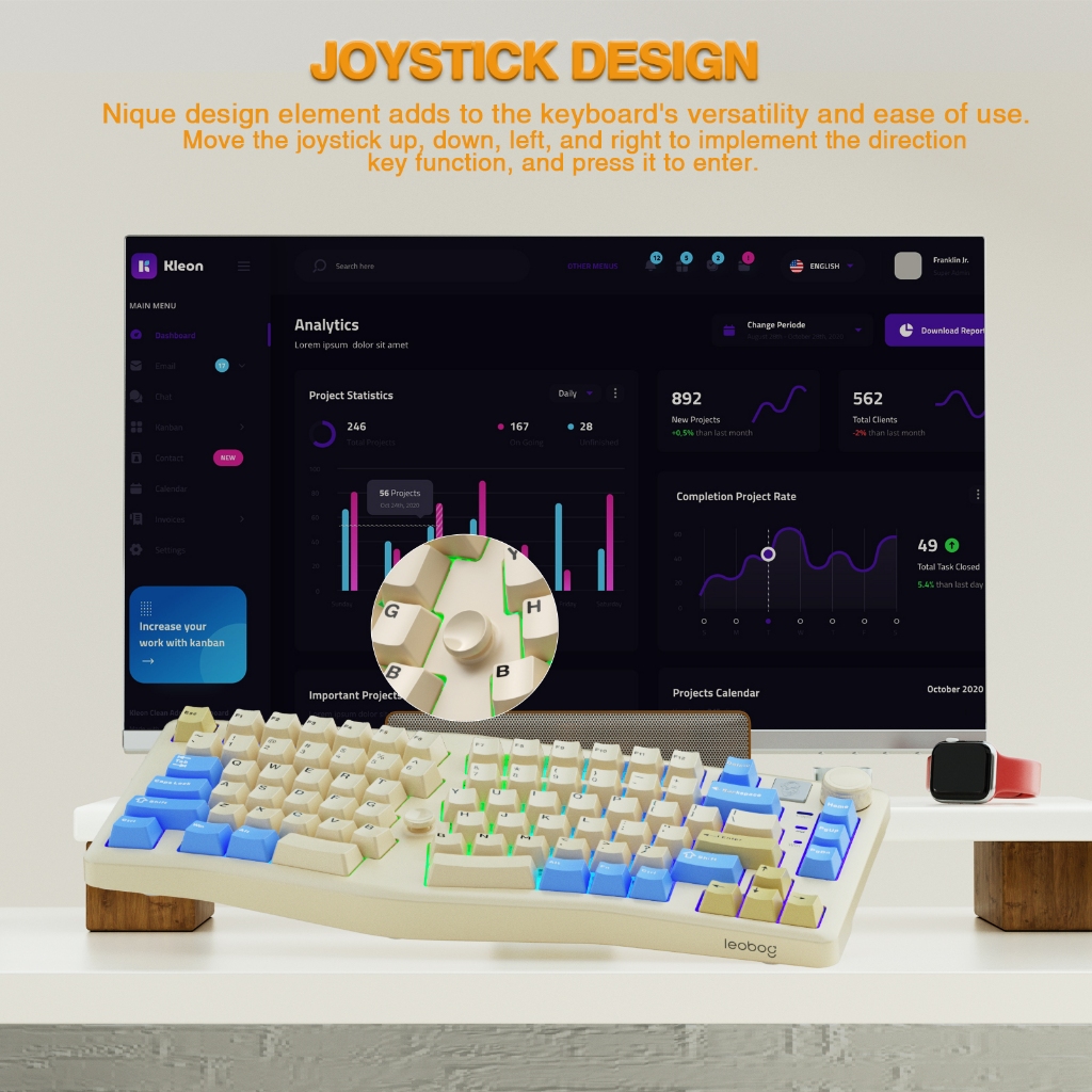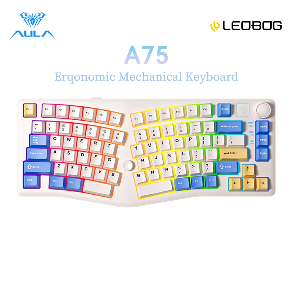 AULA LEOBOG A75 Ergonomic Keyboard 83 keys Wired/2.4G/BT RGB Hot-swap with knob, Joystick Controls Mouse Pointer