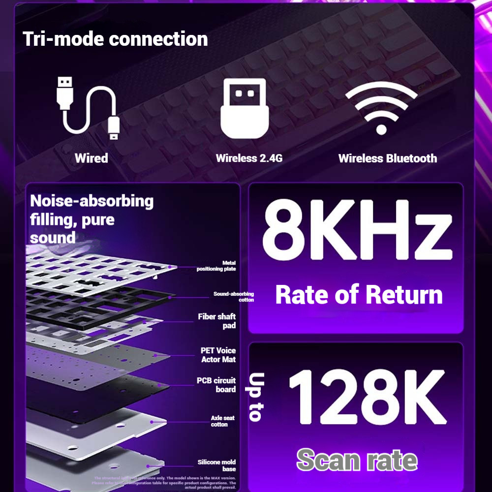 AULA MINI 60HE Three Mode Customized RT0.01 E-sports 8K Game Mechanical Keyboard