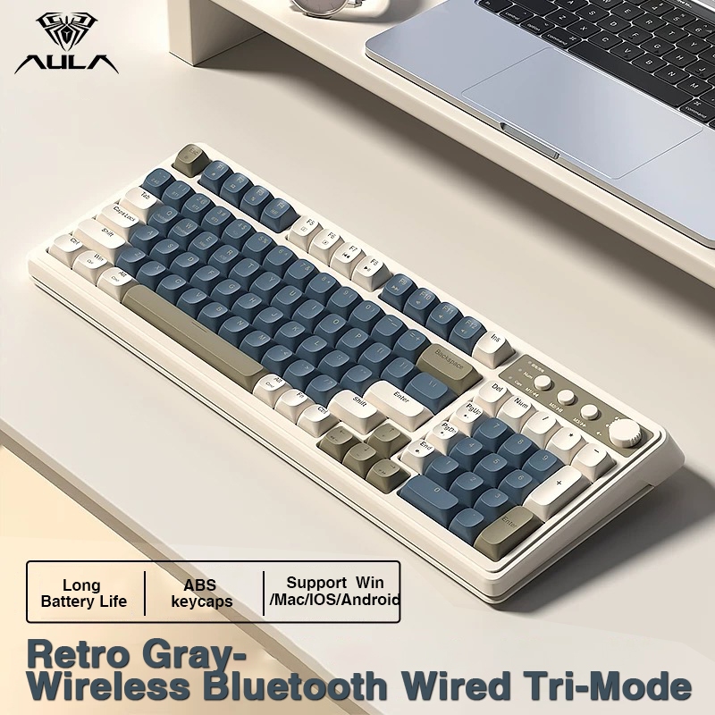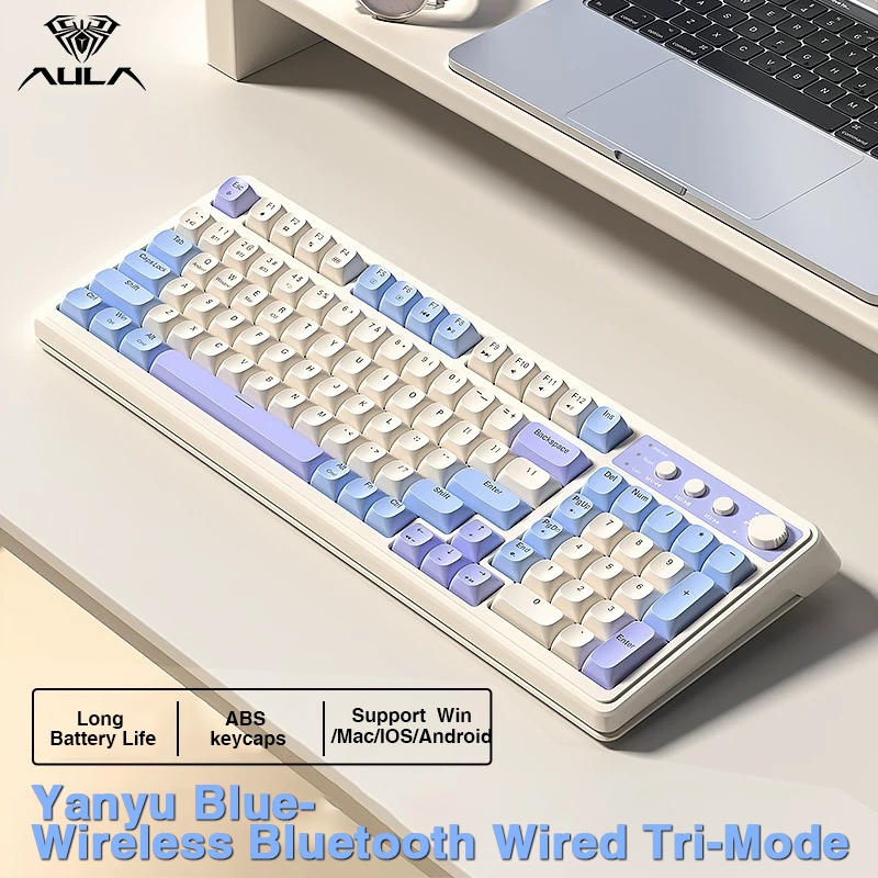 AULA S99 Wireless Membrane Keyboard 99 Keys Tri-mode RGB Multi-function Roller for Office and Gaming Keyboard