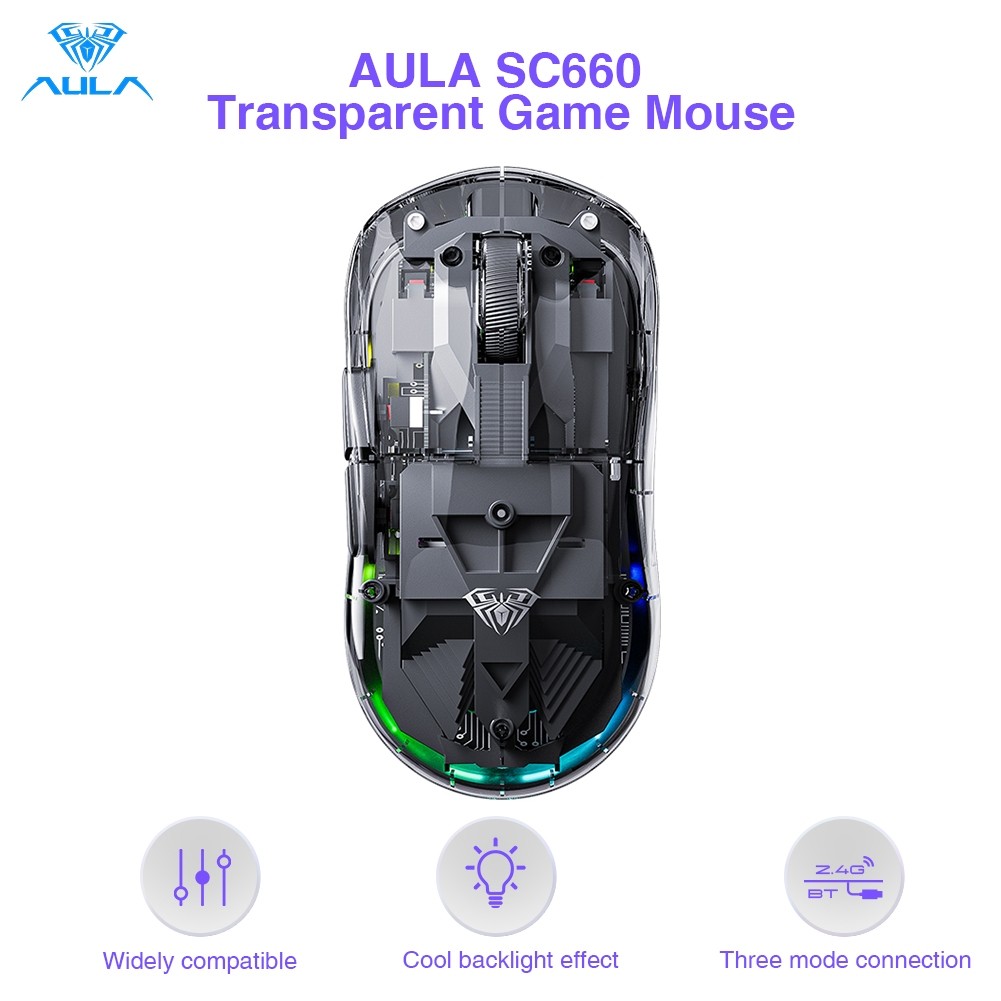 AULA SC660 Tri-Mode Game Mouse Wireless 2.4G/bluetooth/wired Backlight DPI Max 10000 Support Driver Customization