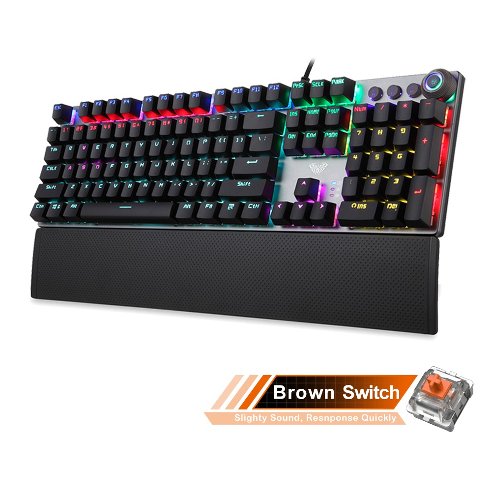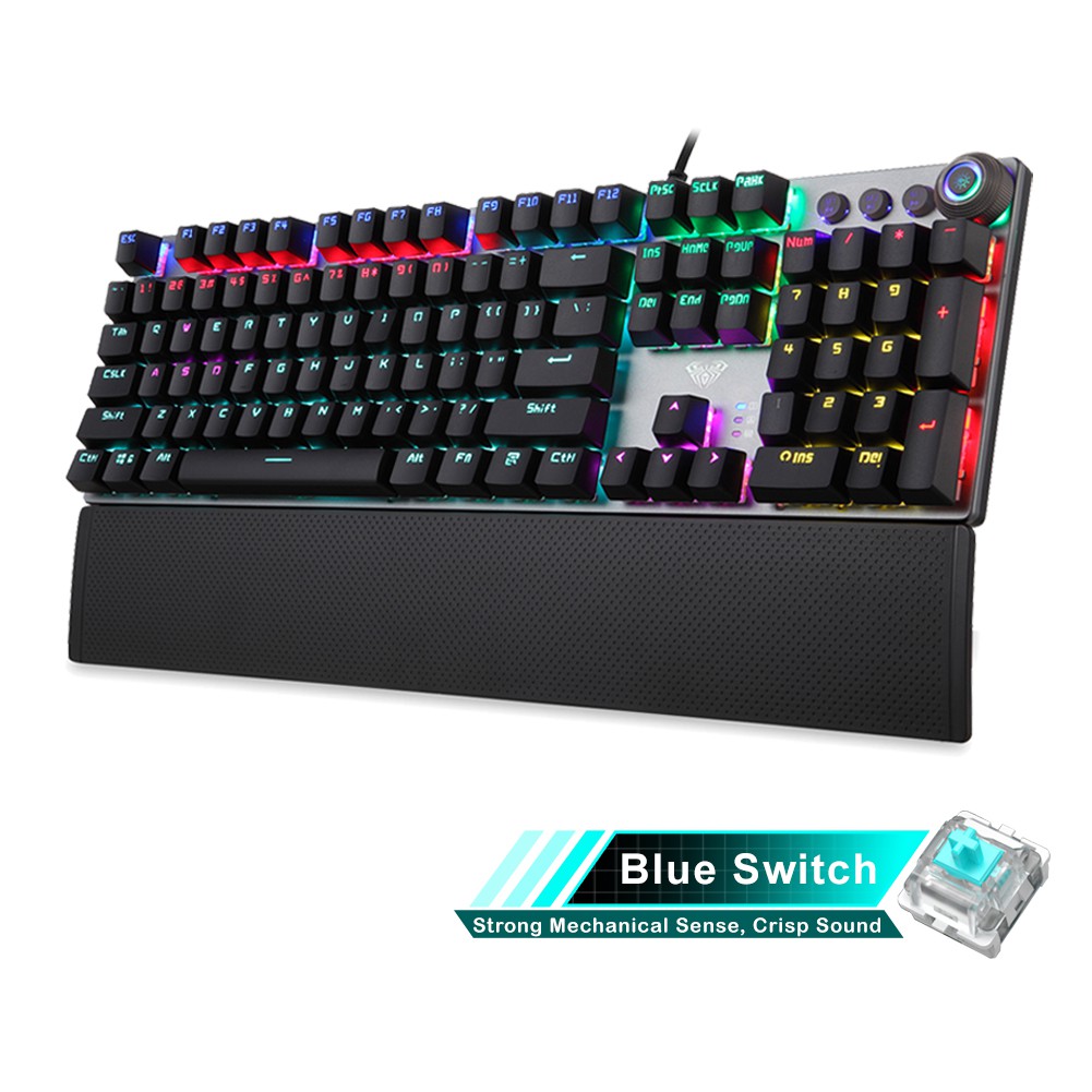 AULA Stock F2088 True Mechanical Keyboard Gaming Keyboard Wrist Rest Multimedia Knob Marco Programming