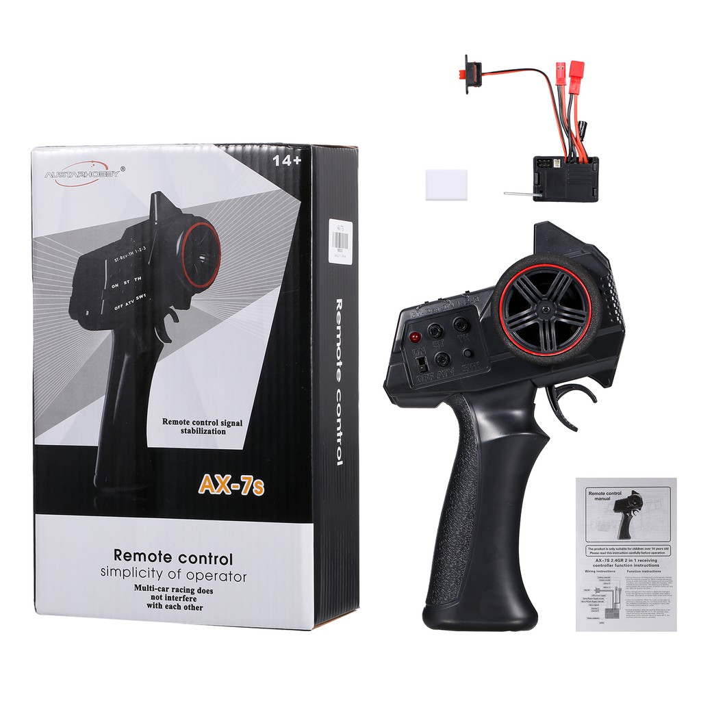 AUSTAR AX-7S 2.4G 3CH Transmitter Remote Controller with 2 in 1 Receiver ESC for 1/14 1/16 1/18 1/24 1/28 1/32 RC Car RC Boat