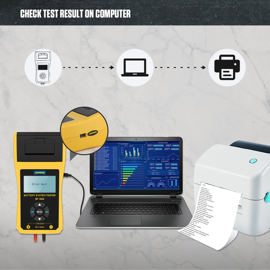 AUTOOL 12V/24V Car Battery Tester With Printer GEL EFB Load Tester Battery Analyzer BT660 [Free 3 Rolls of Printing Paper]