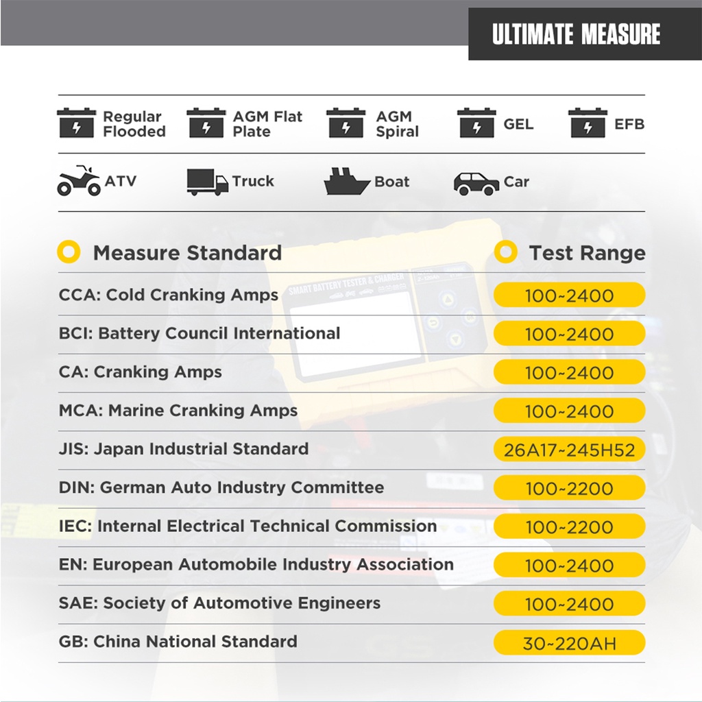 AUTOOL 12V Automotive Smart Battery Tester Analyzer Reverse Polarity Protection CCA2400 Battery Charger BT380