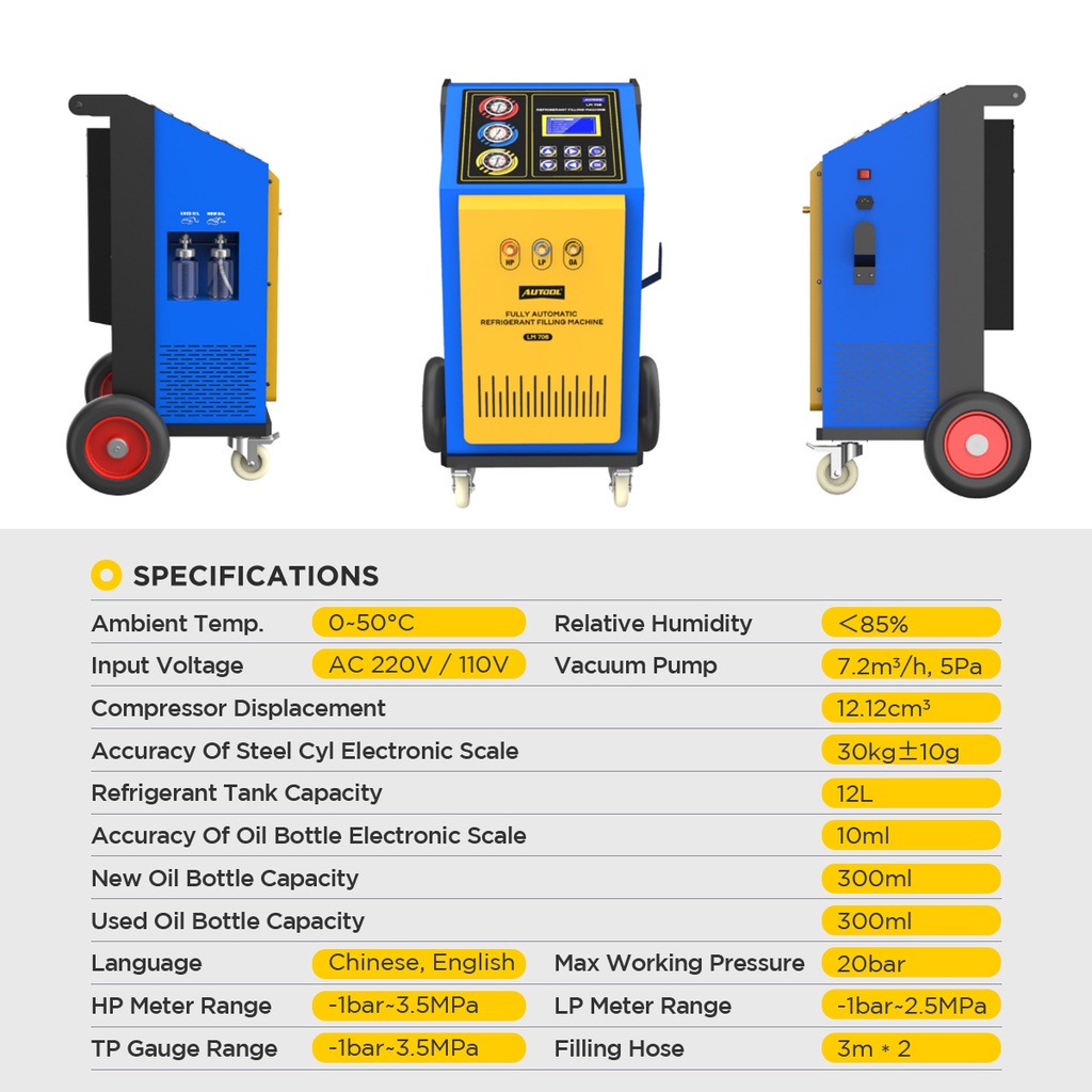 AUTOOL LM706 Refrigerant Recovery Machine with Refrigerant Recovery & Vacuuming & Refueling & Filling Refrigerant for R134a/ R12