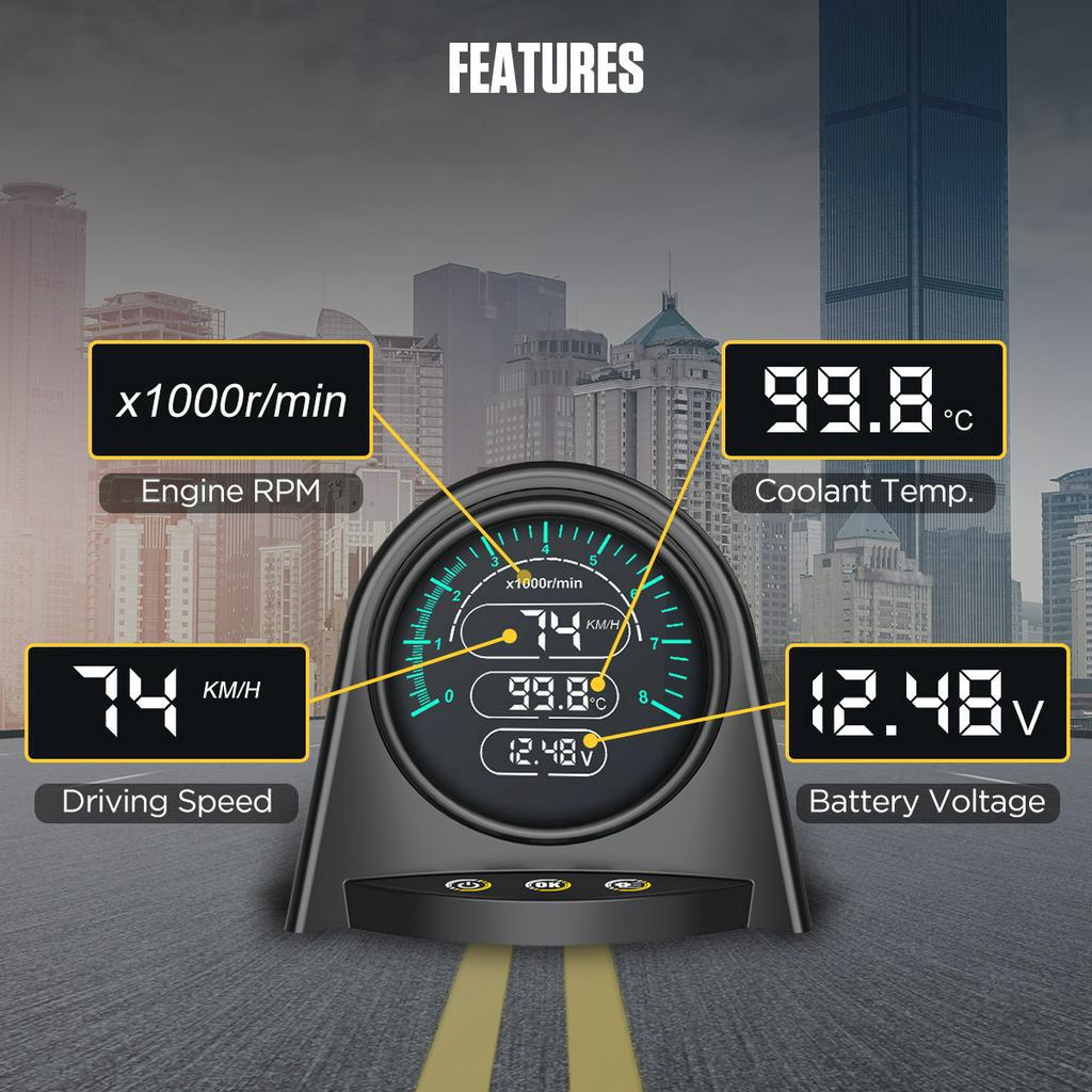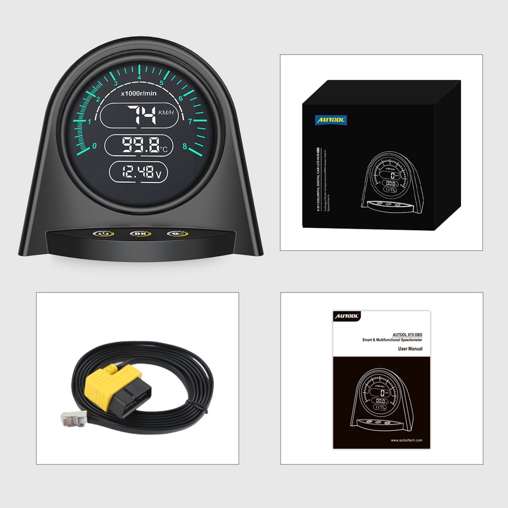 AUTOOL OBD HUD Multifunctional Speedometer Speeding Alarm Engine RPM Display Coolant Temperature Display Battery Voltage Display X70