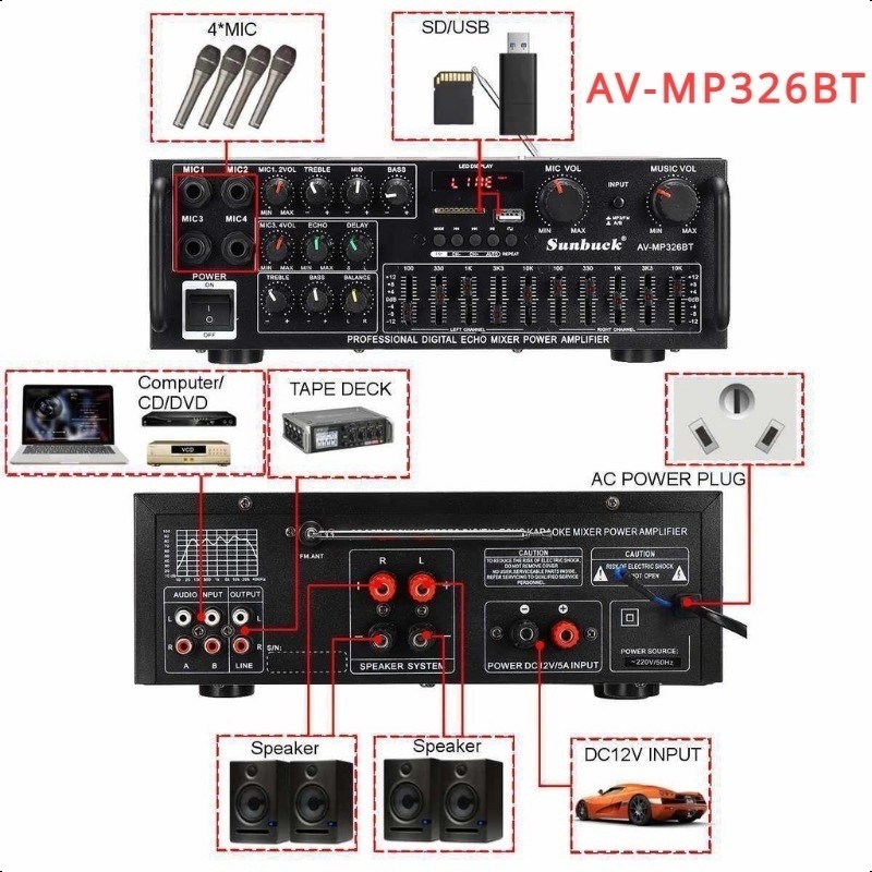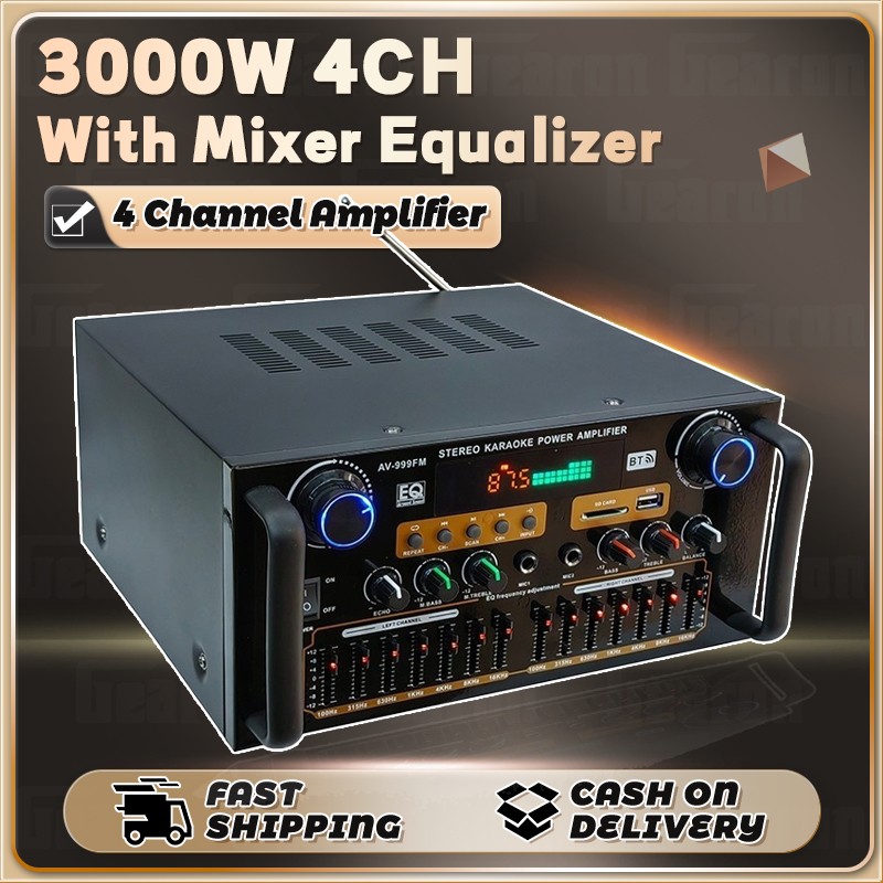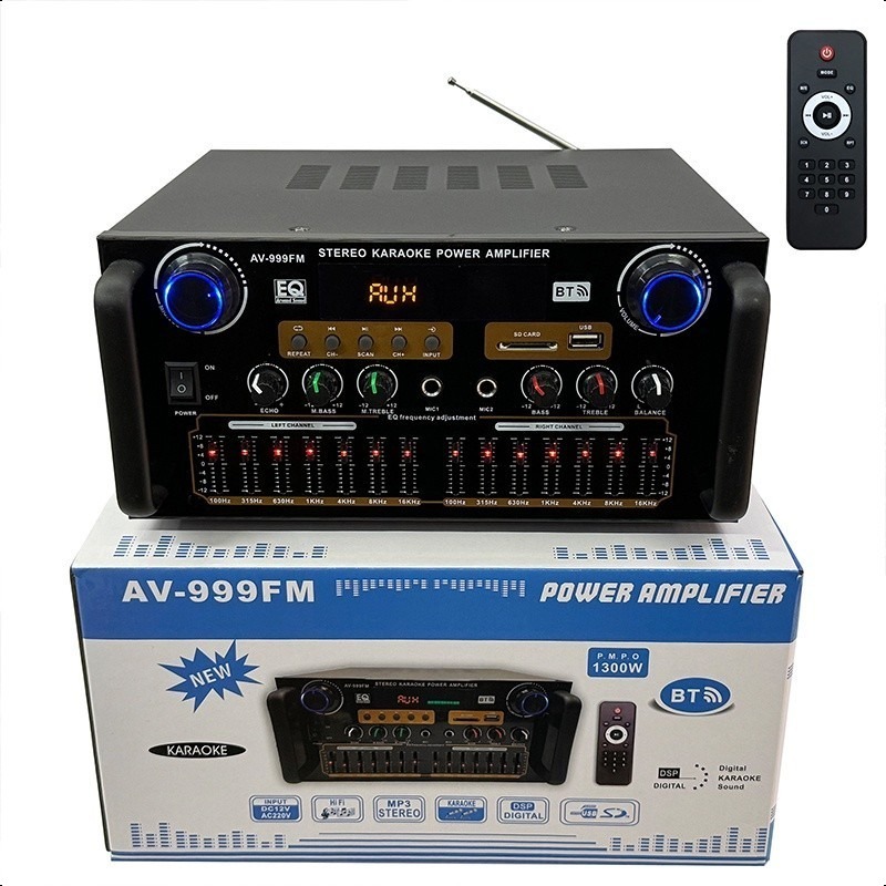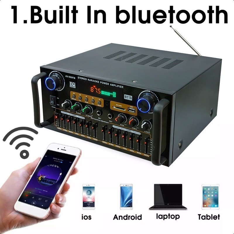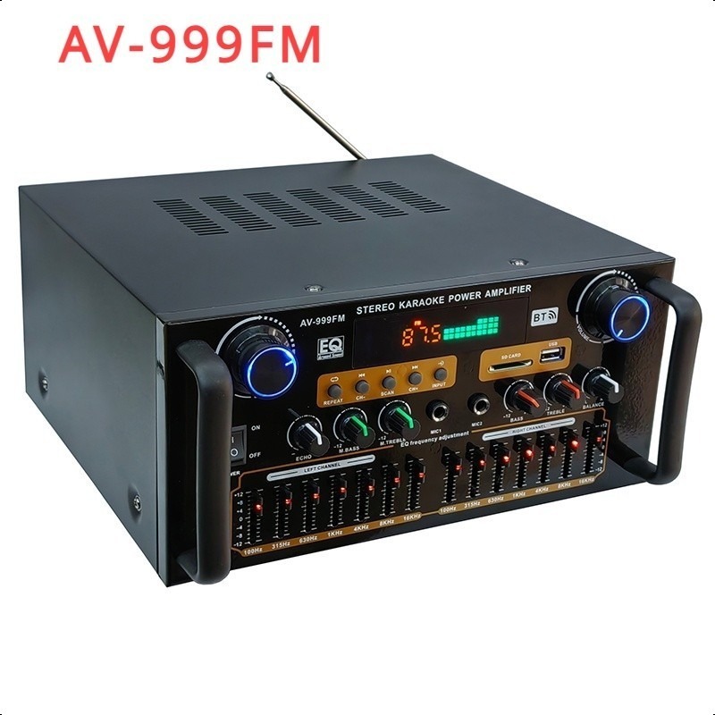 AV-999FM 220V 3000W Home Stereo Audio Amplifier Bluetooth 4CH EQ Wireless With Mixer Equaliz