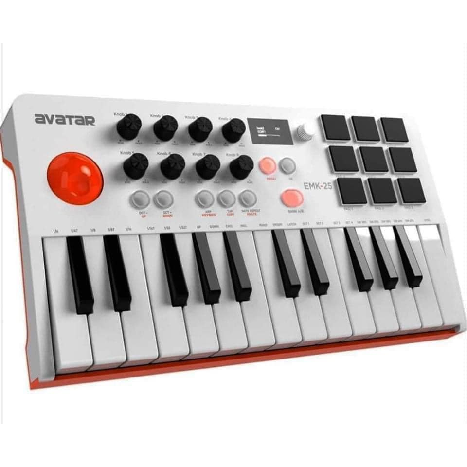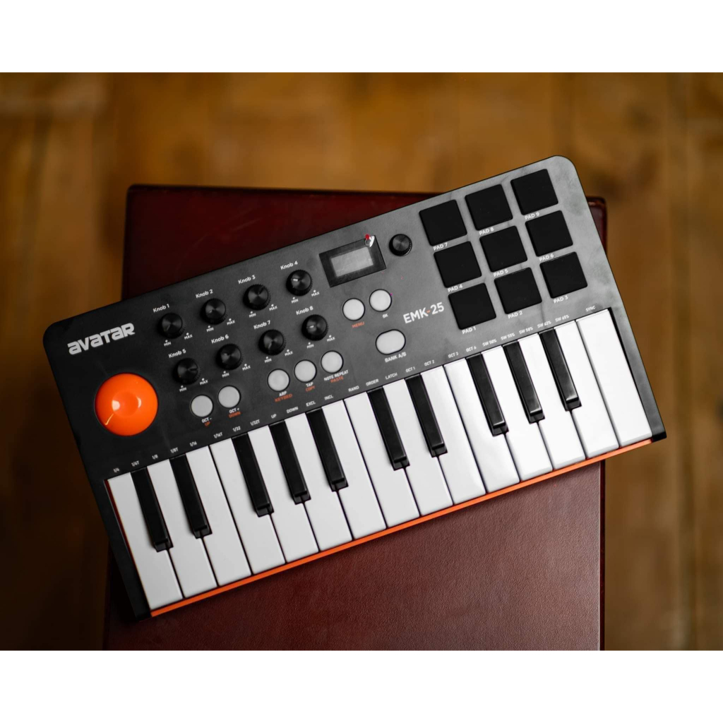 AVATAR MIDI Mini Keyboard EMK-25 w/ 9 PADS Velocity Sensitivity (BLACK) (BLACK/ORANGE)