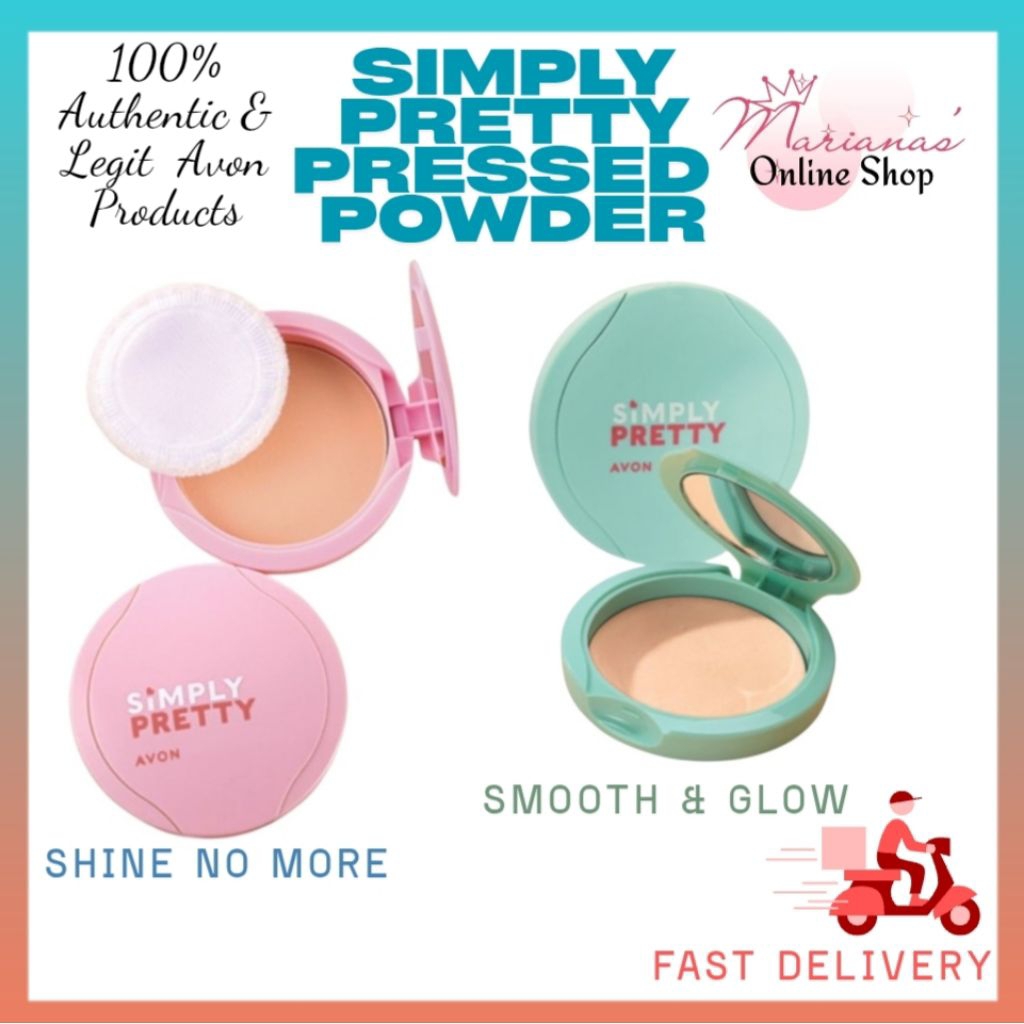 AVON SIMPLY PRETTY SMOOTH & GLOW PRESSED POWDER Spf 14 & SHINE NO MORE PRESSED POWDER 10g