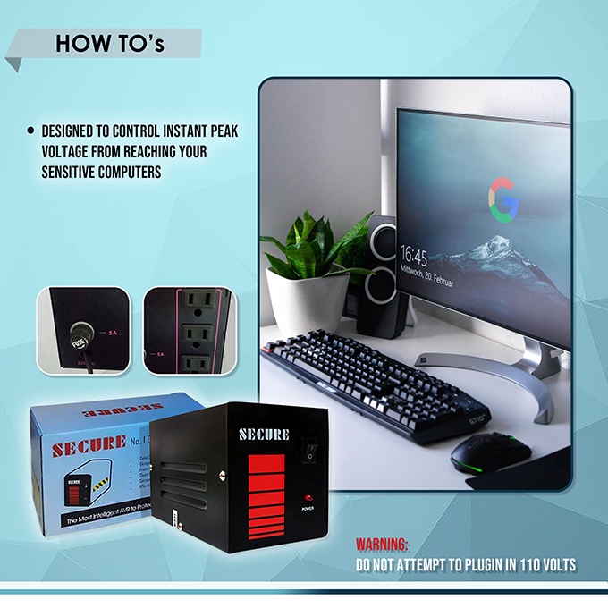 AVR (AUTOMATIC VOLTAGE REGULATOR), SECURE BRAND, 3x 220 Volts, 500W