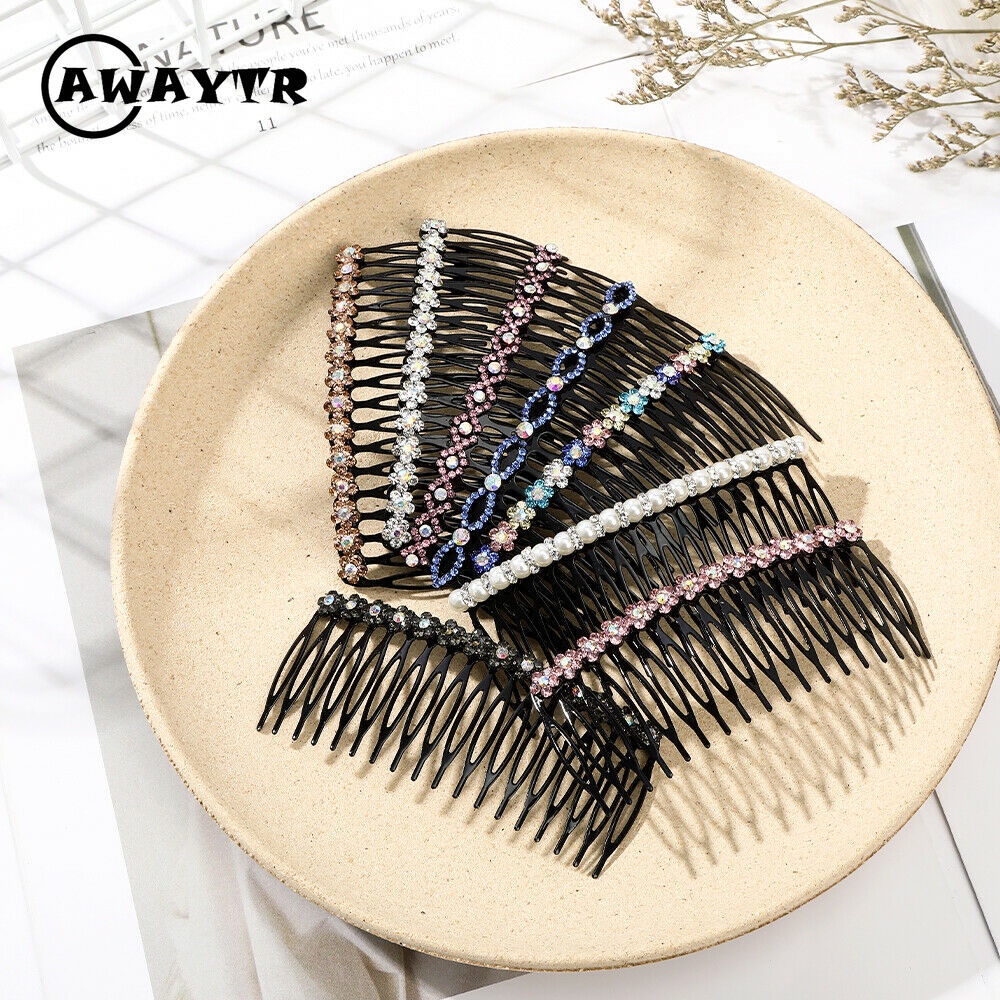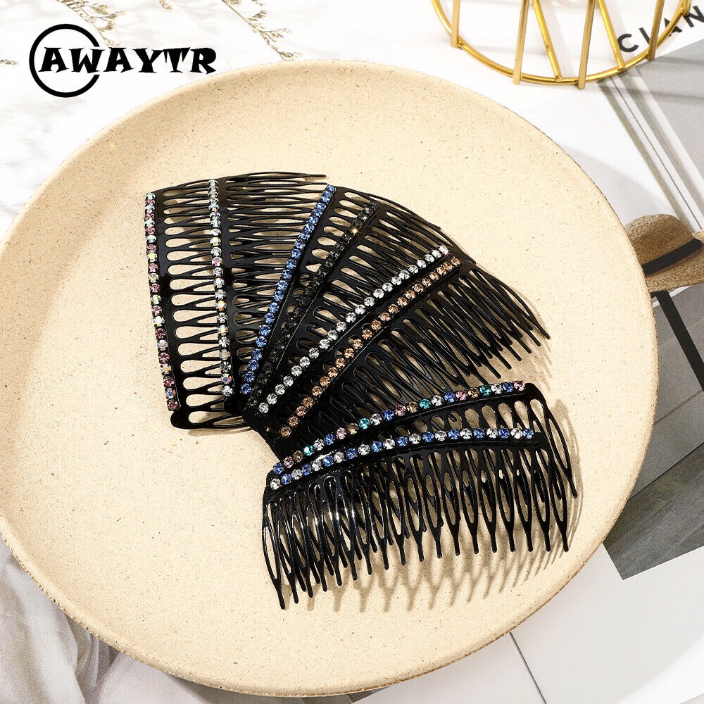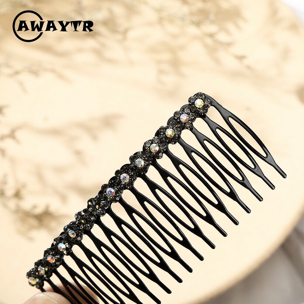 AWAYTR New Women Rhinestone Hair Combs Vintage Hairpins Flower Hair Clips Hair Bun Headwear Hair Accessories