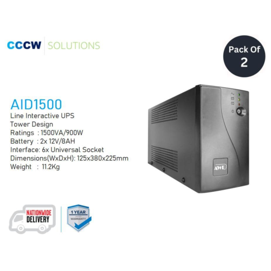 AWP AIDE SERIES AID1500 1500VA/900W Line Interactive, Tower UPS