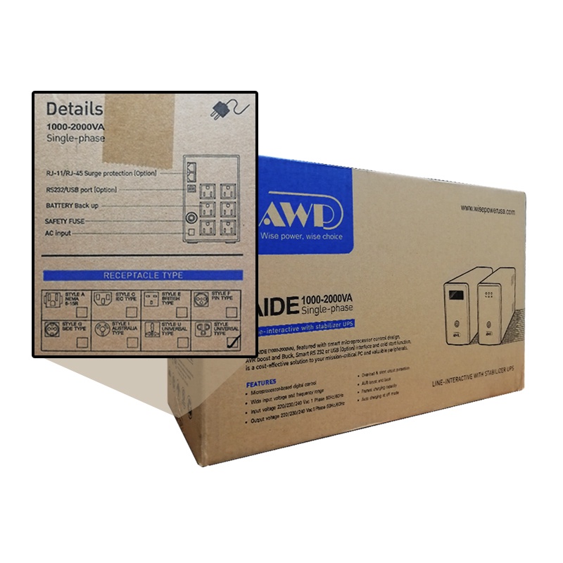 AWP Aide 1200W-2000VA Single Phase Line - Interactive with Stabilizer UPS/AVR (6 Sockets)
