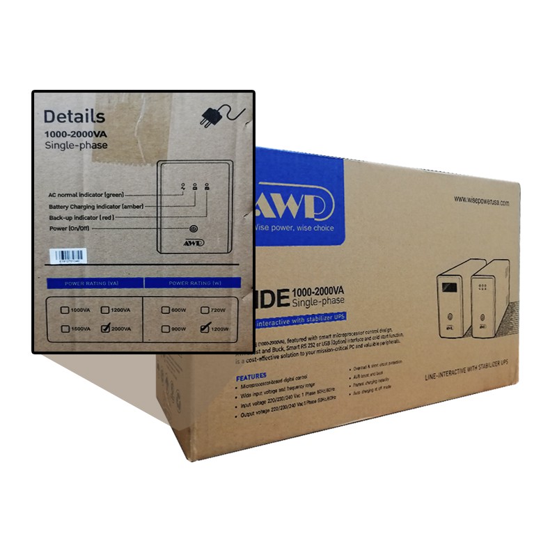 AWP Aide 1200W-2000VA UPS/AVR (6 Sockets)