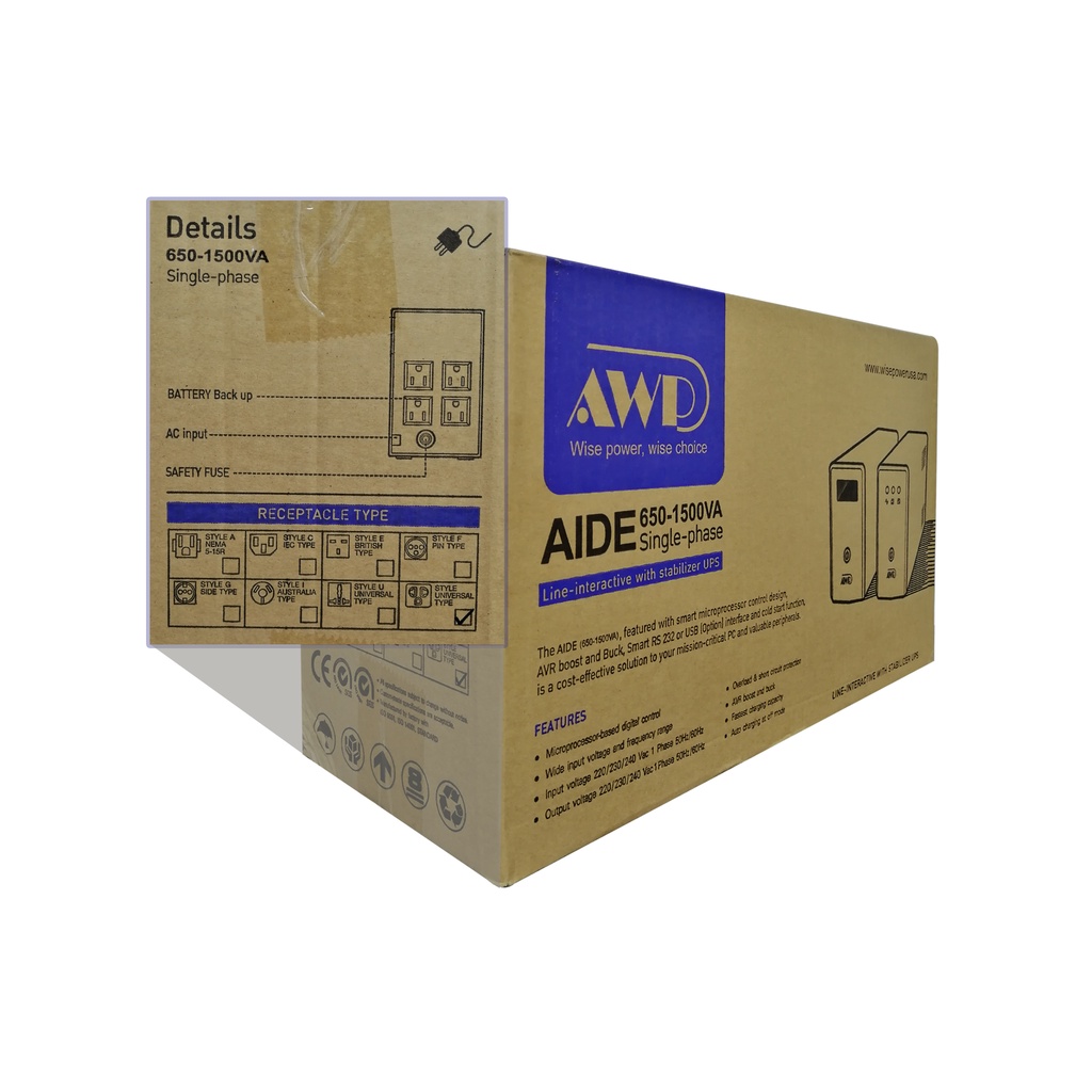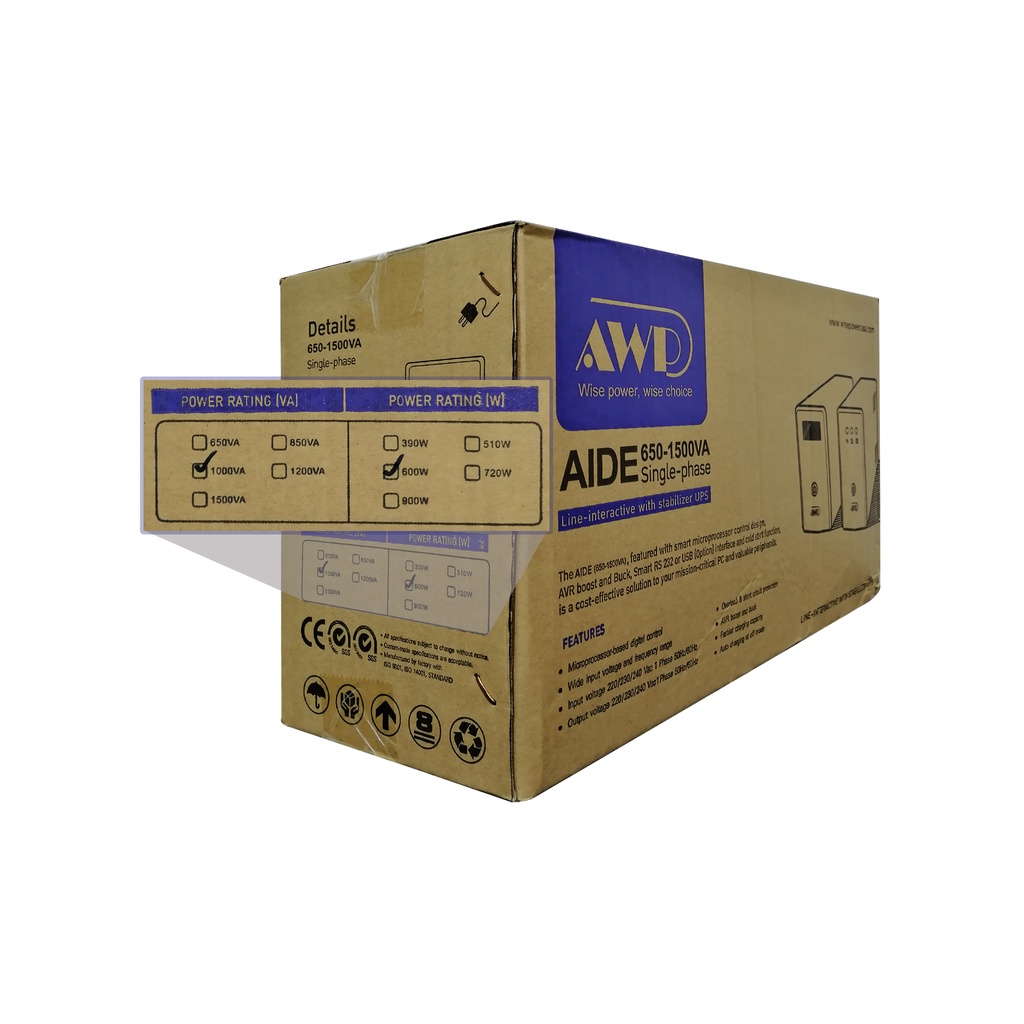 AWP Aide 600W-1000VA Uninterruptible Power Supply with AVR (4 Sockets)