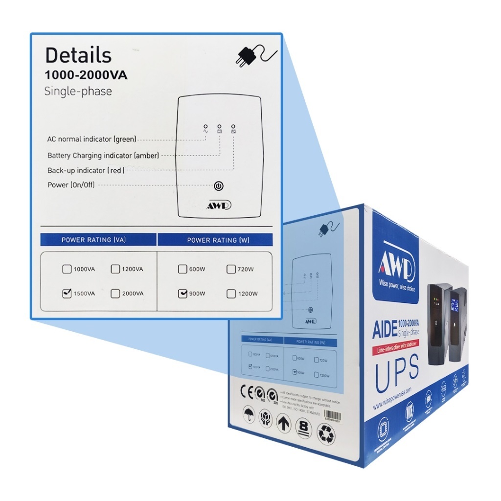 AWP Aide 900W-1500VA UPS/AVR (6 Sockets)
