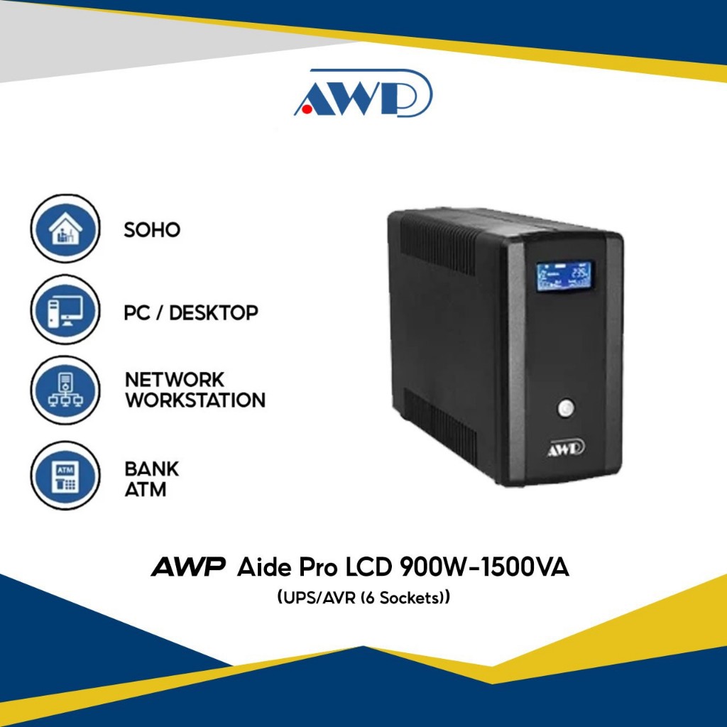 AWP Aide Pro LCD 900W-1500VA UPS with AVR Uninterruptible Power Supply (6 Sockets)