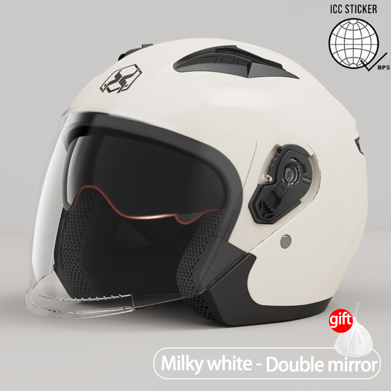 AXK 801 Double Miorr Motorcycle Half Face Classic Helmet