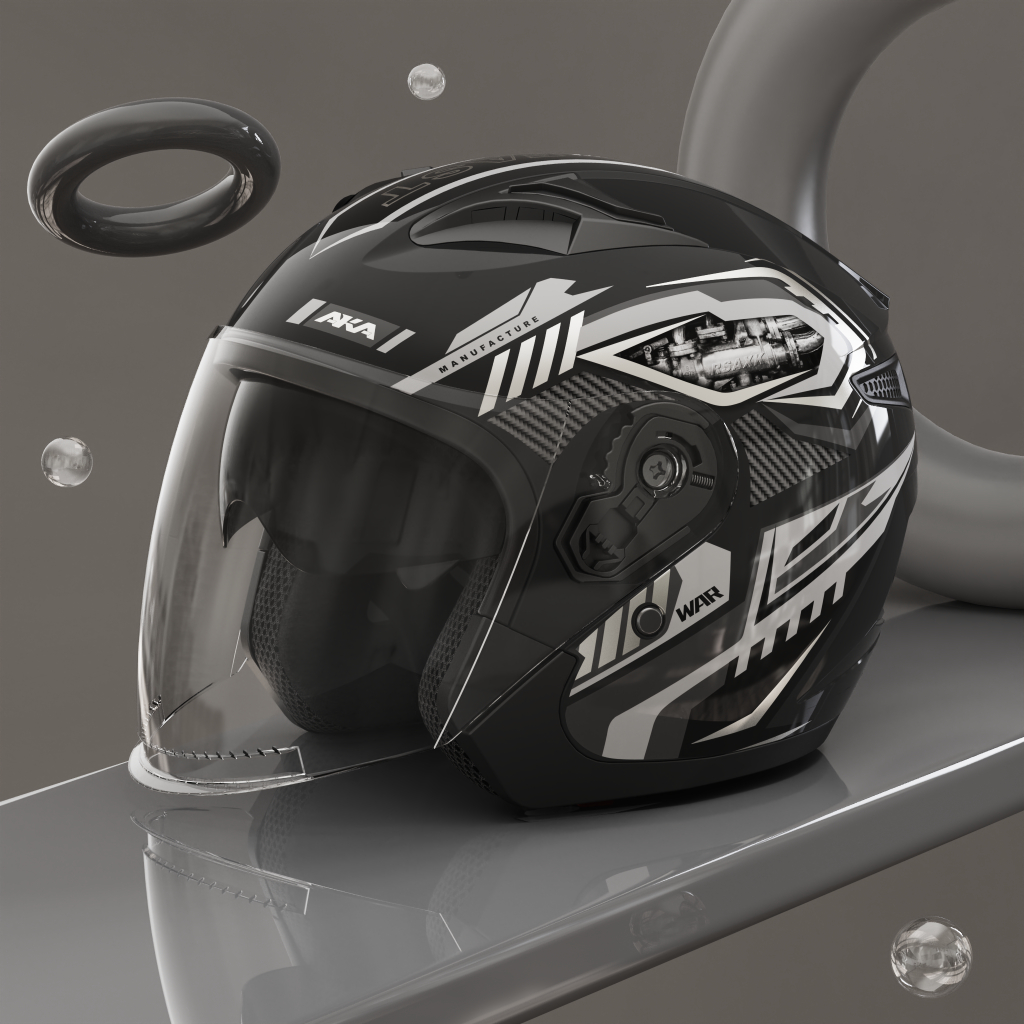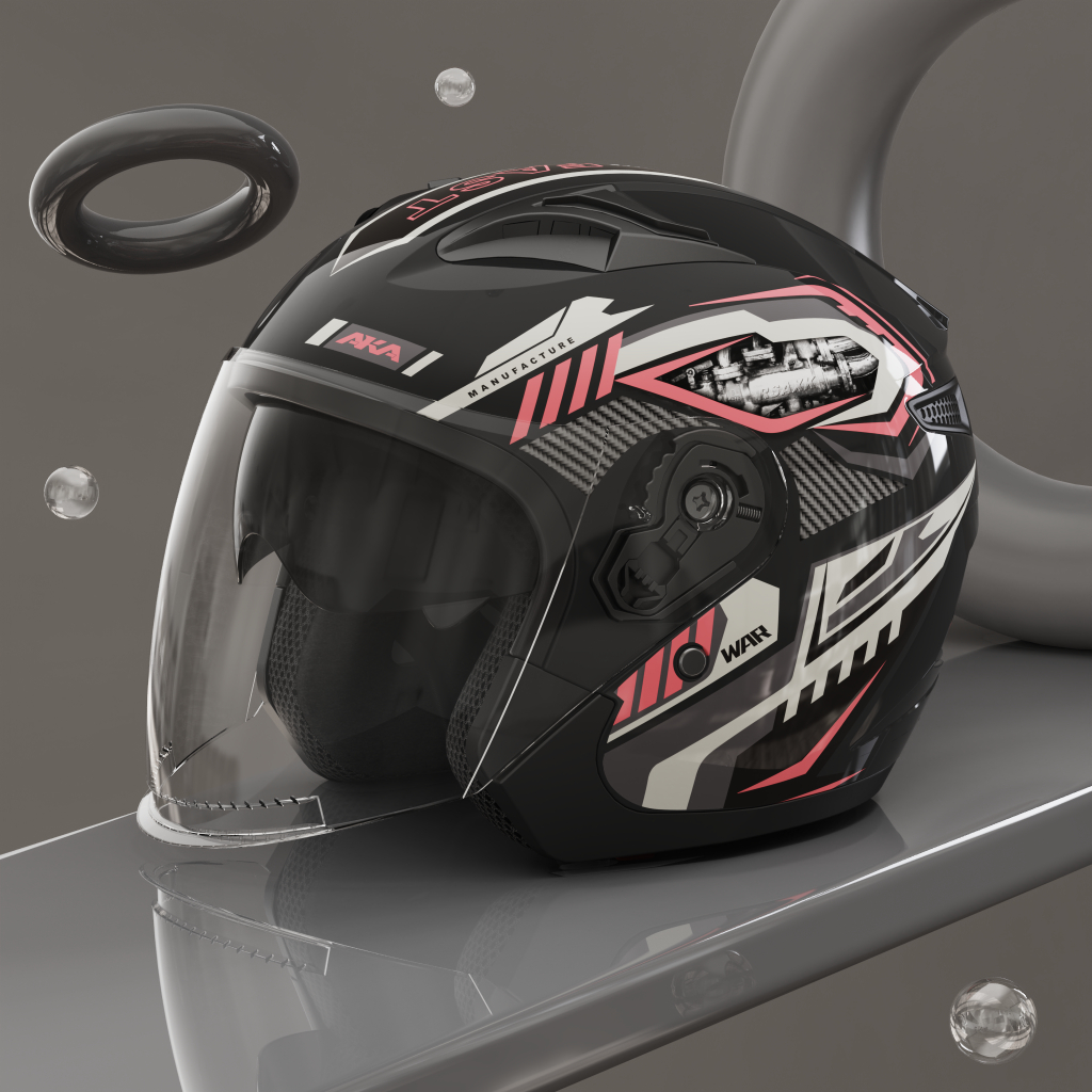 AKA/AXK 801 Motorcycle Double Miorr Half Face Helmet