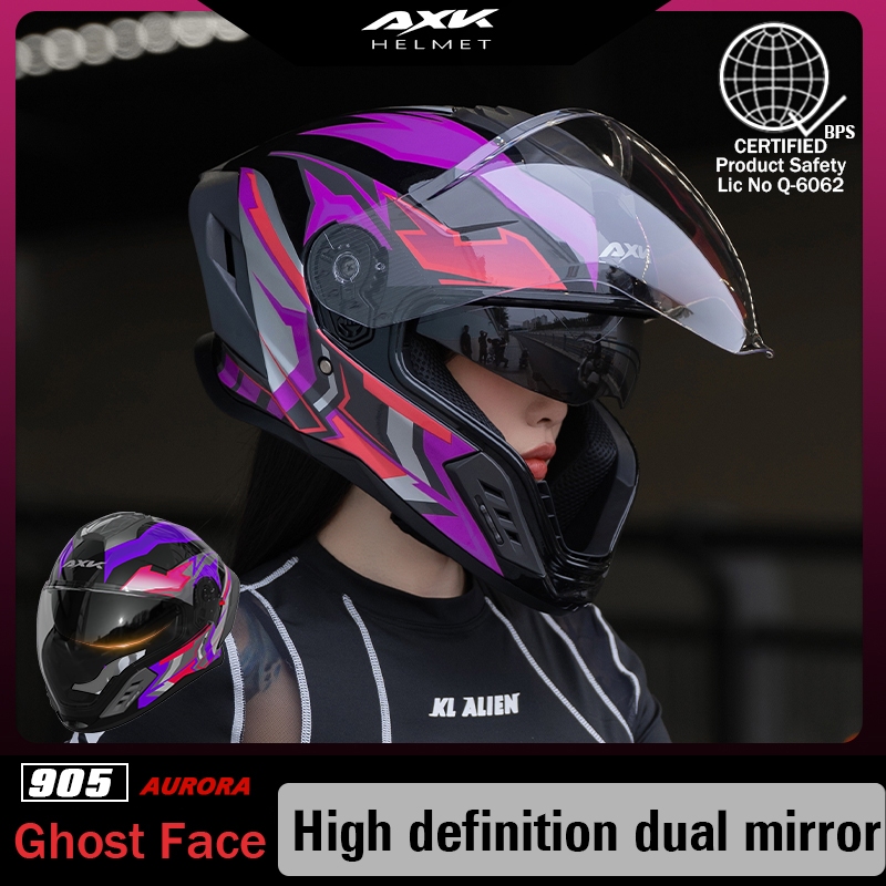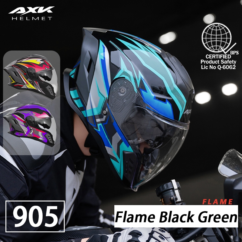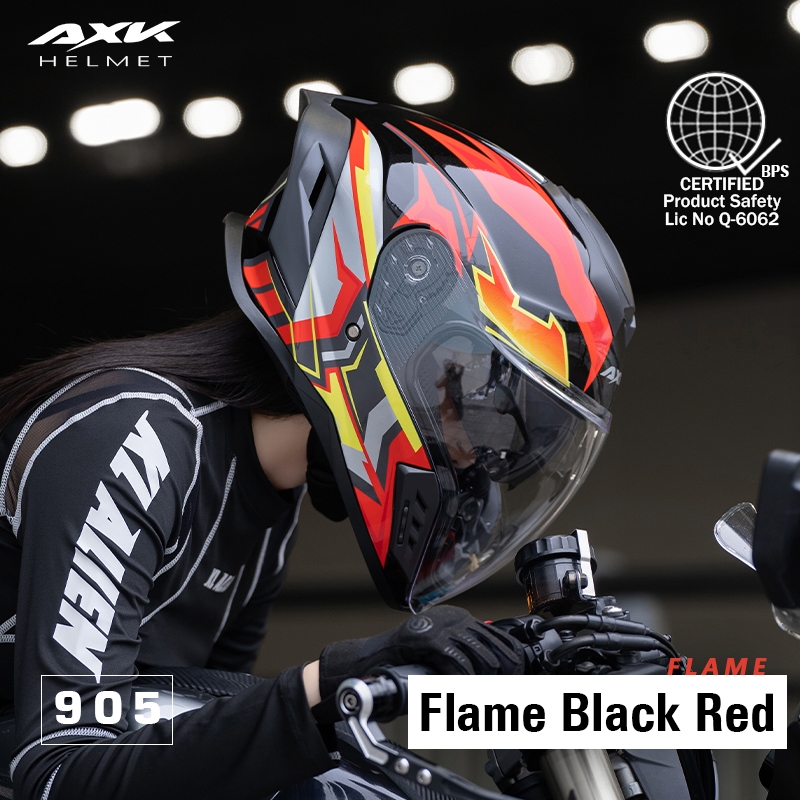 AXK Motorcycle Full Face Helmet Model 905 Flame Series with ICC Sticker Safety Helmet for Riding