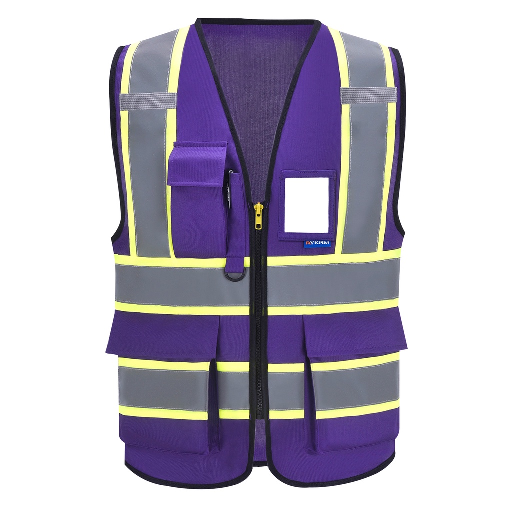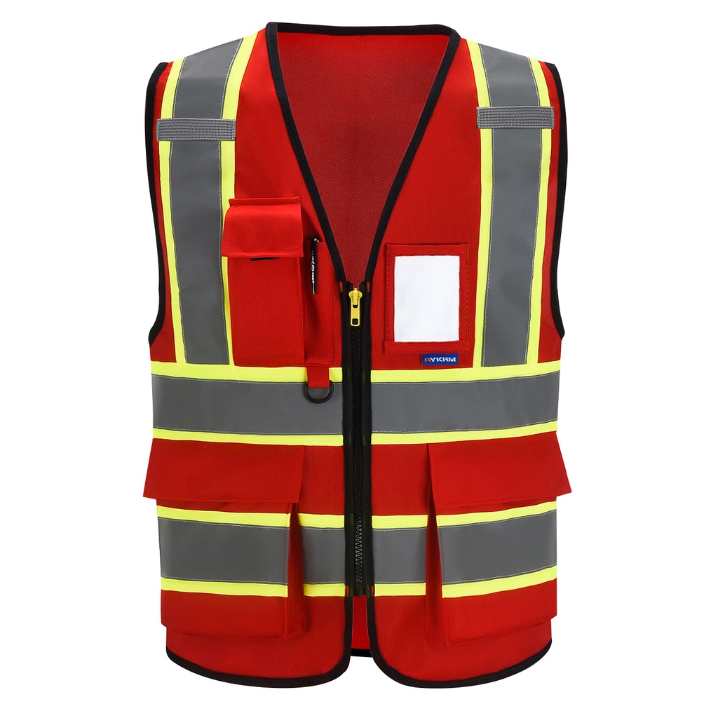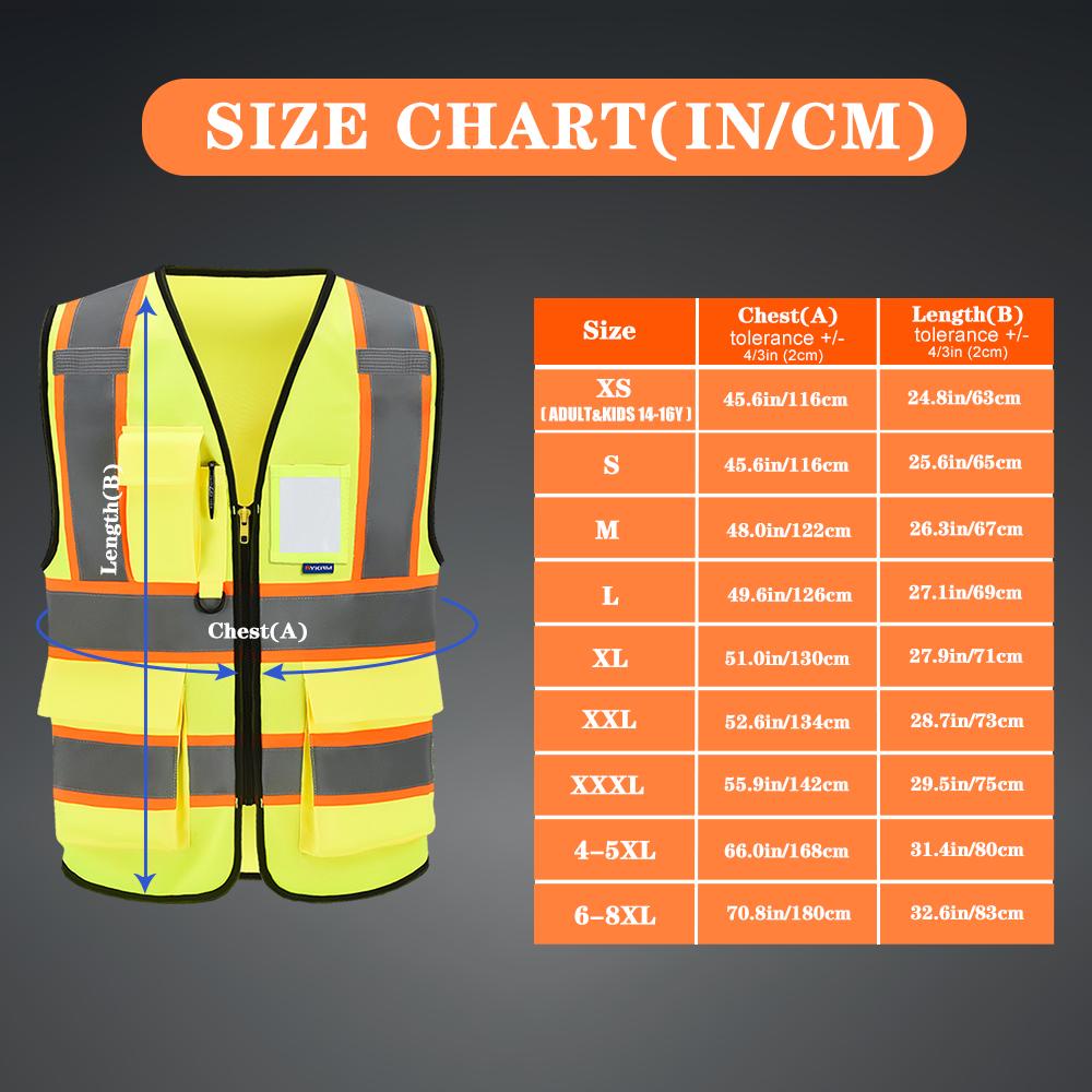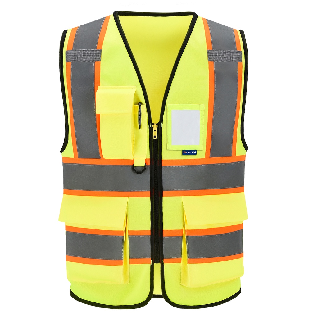 AYKRM High Visibility Safety Vest with Pockets Reflective Strips and Zipper,Yellow Orange(XS-6XL)