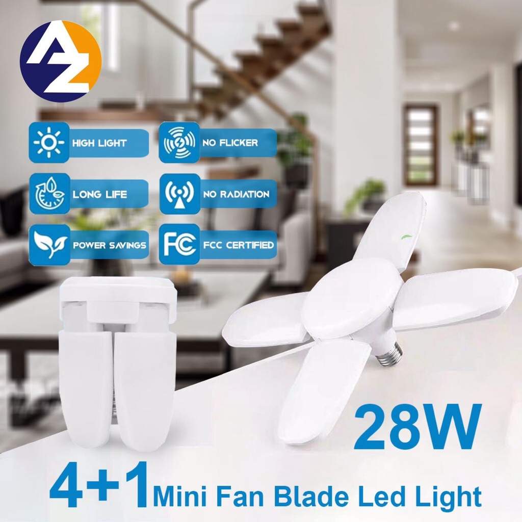 AZ MINI 4+1 28W DEFORMABLE LED CEILING LIGHT WITH 4 ADJUSTABLE PANELS FAN BLADE BULB LIGHT BULB