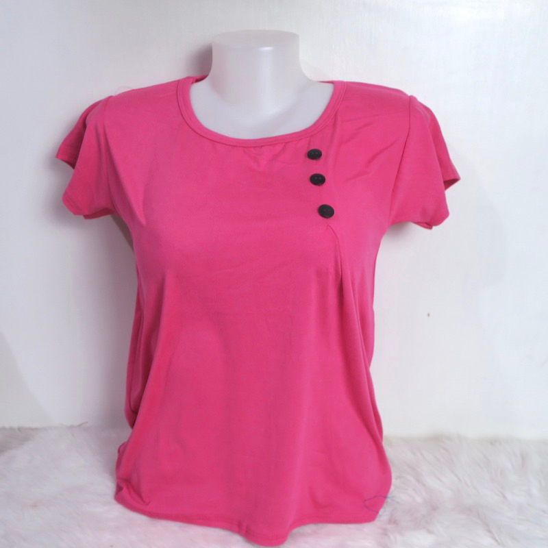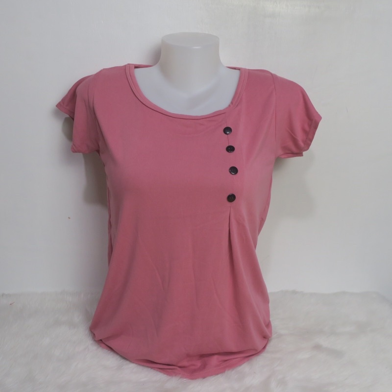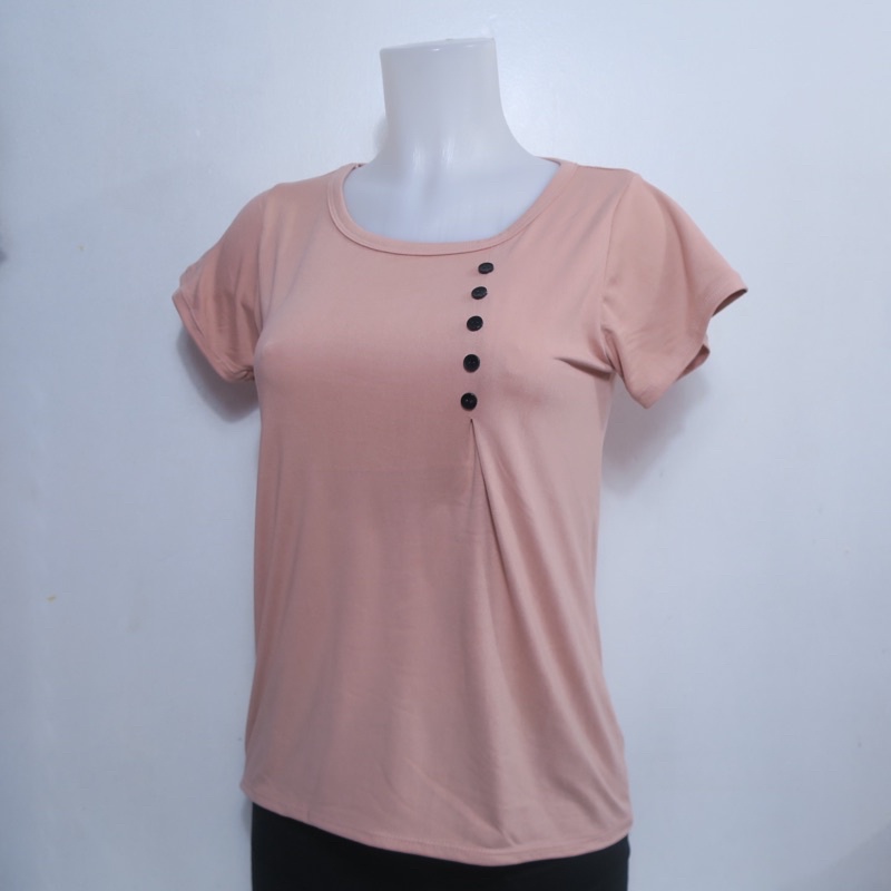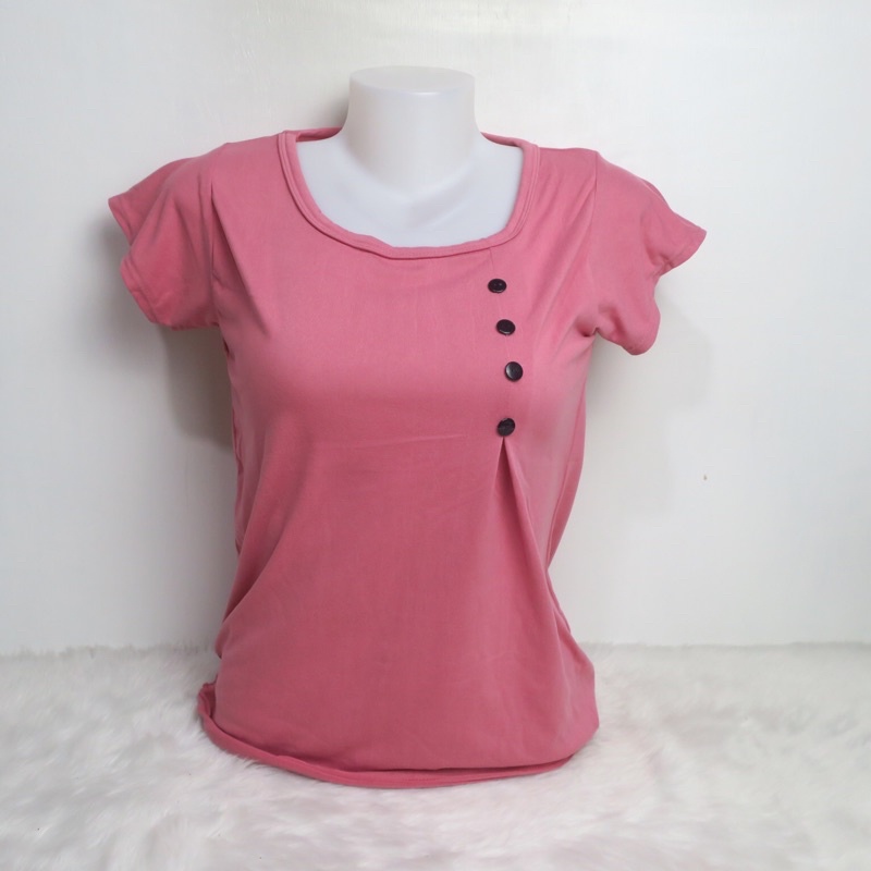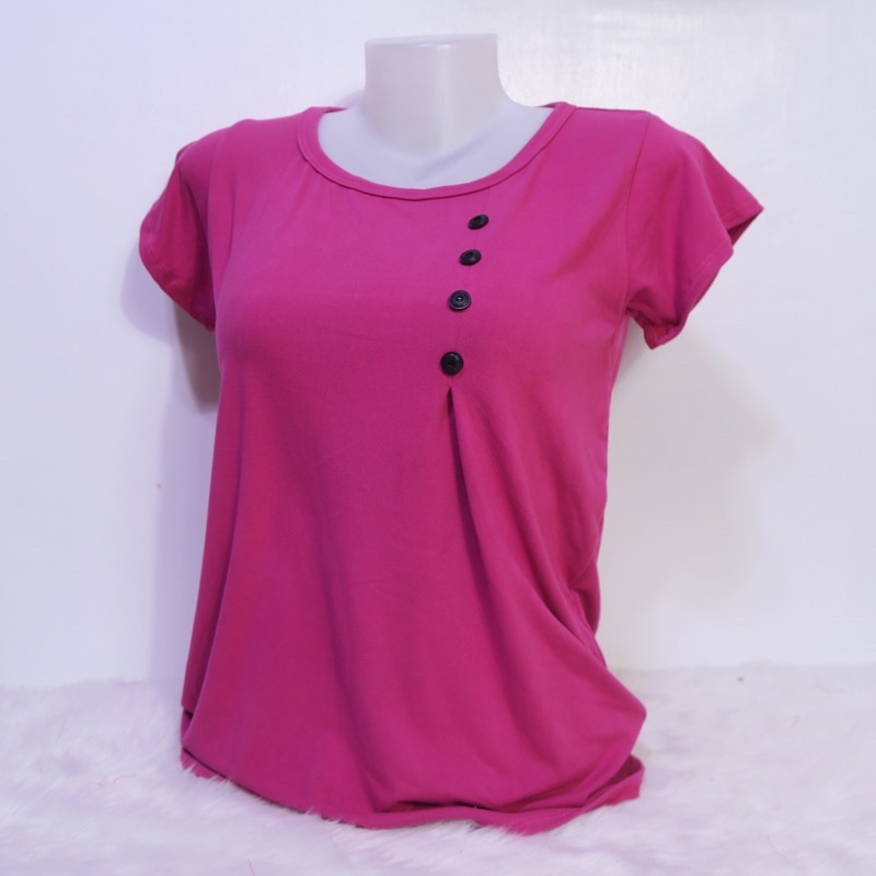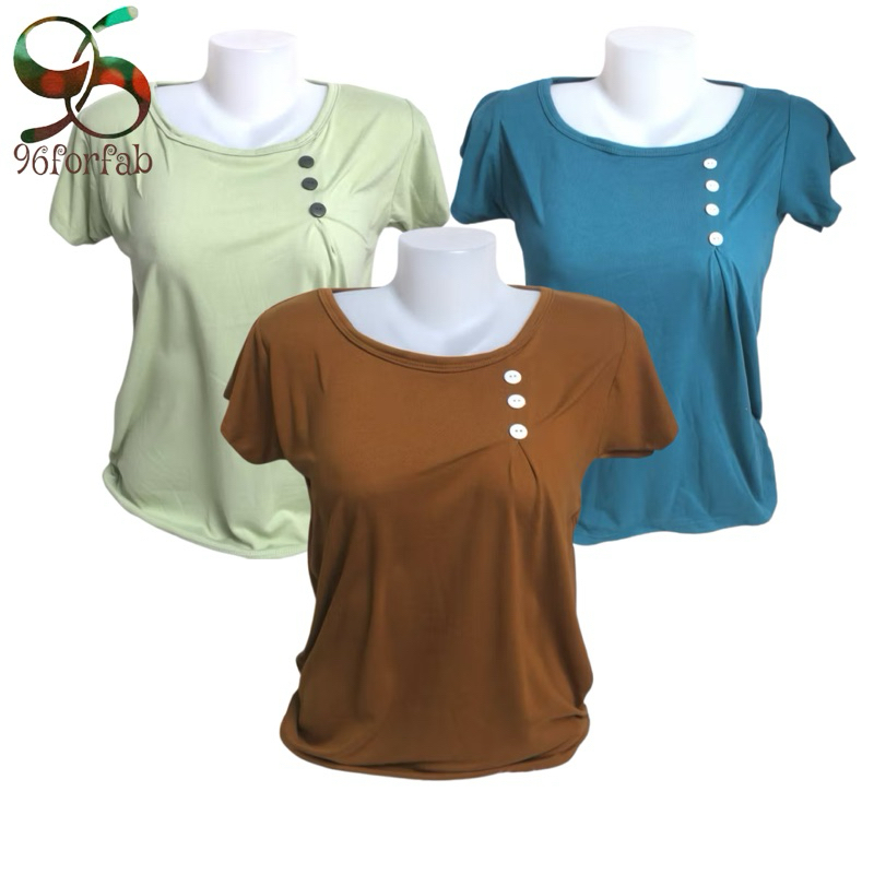 AA3 Plain Side Button Round neck Plain Blouse For Women - Basic - Daily - Pambahay - Casual Blouse