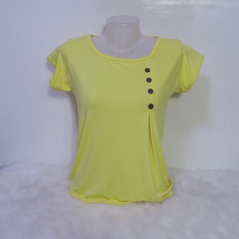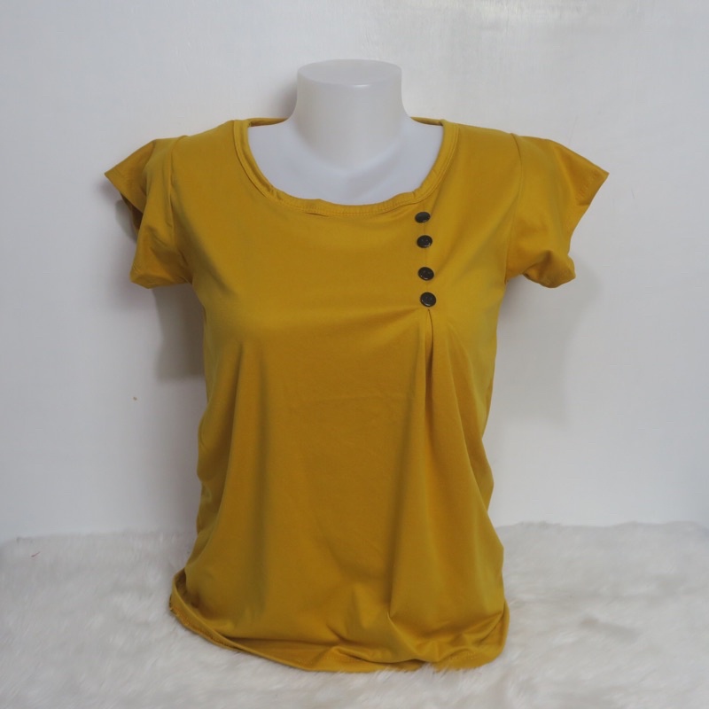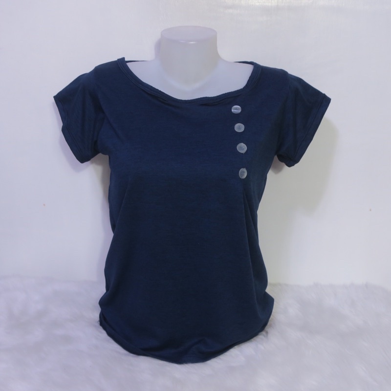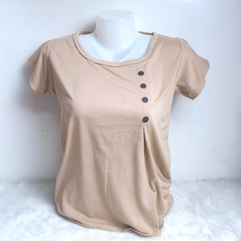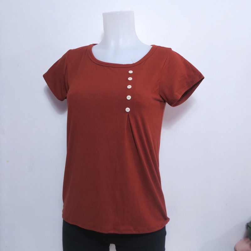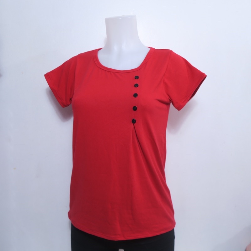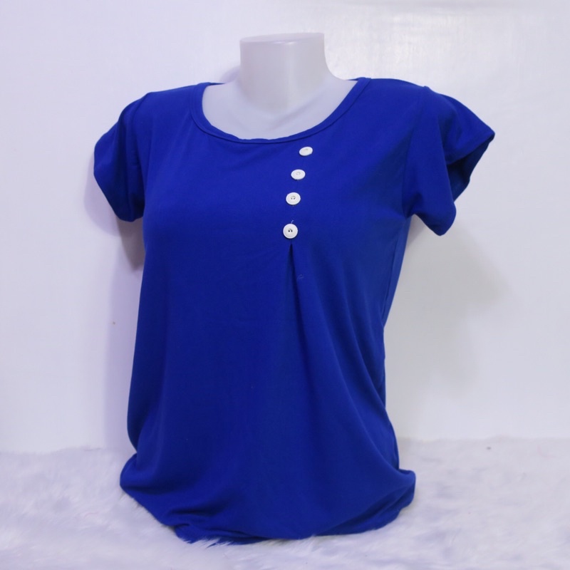 AA3 Plain Side Button Round neck Plain Blouse For Women - Basic - Daily - Pambahay - Casual Blouse