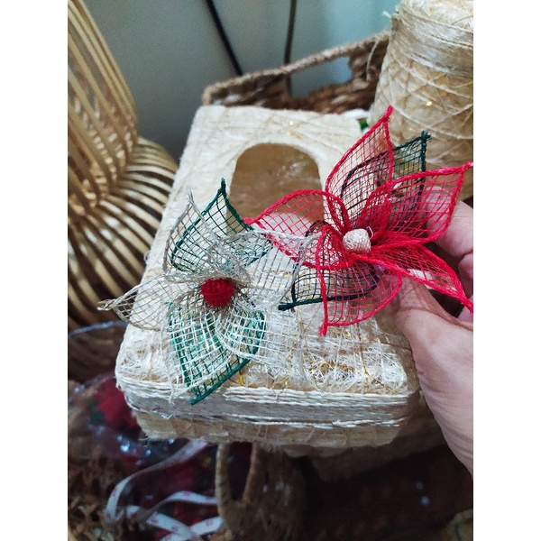Abaca Poinsettia/ Christmas tree ornament flower