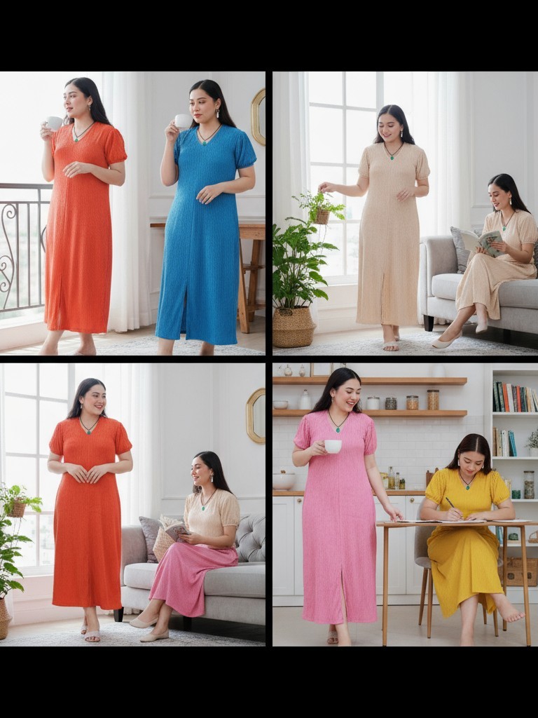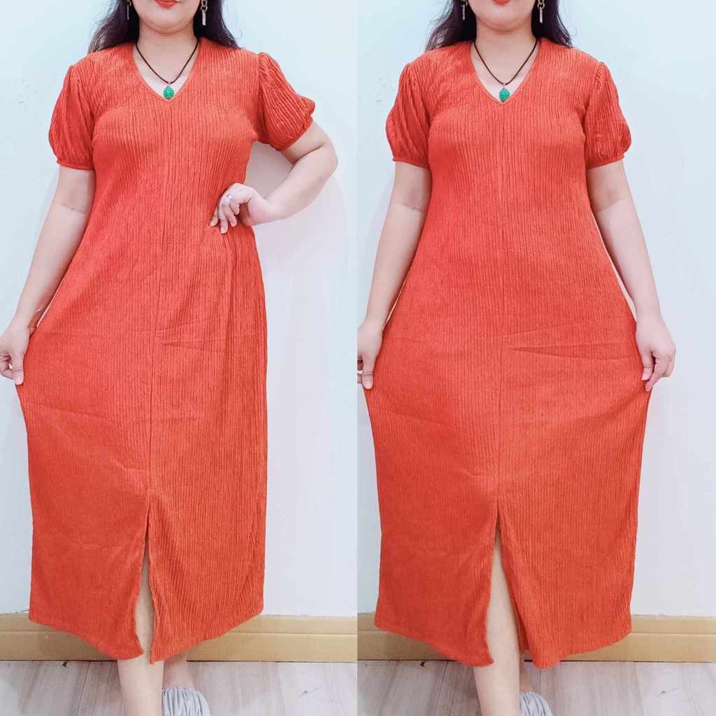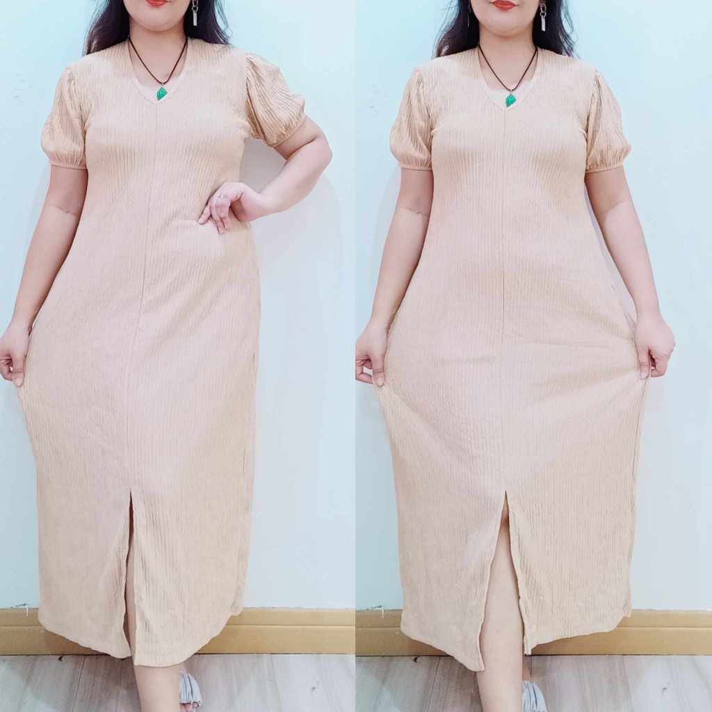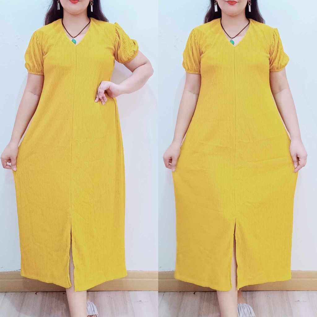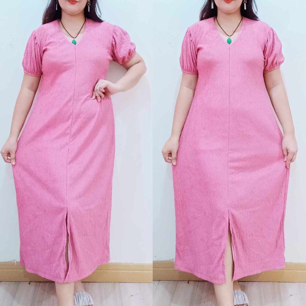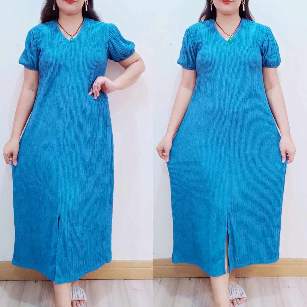 Abegail Premium Front Slit Maxi Puff Casual Dress