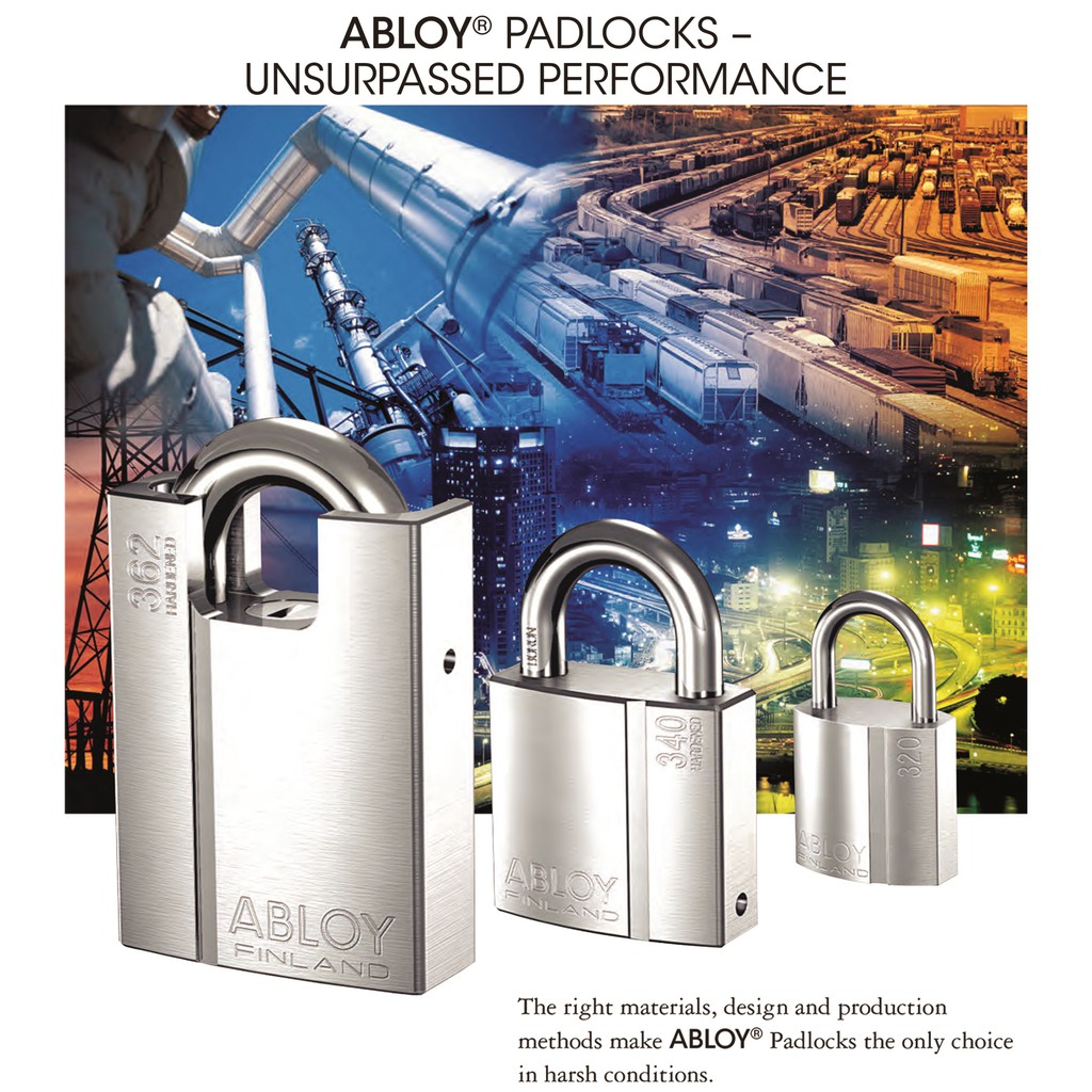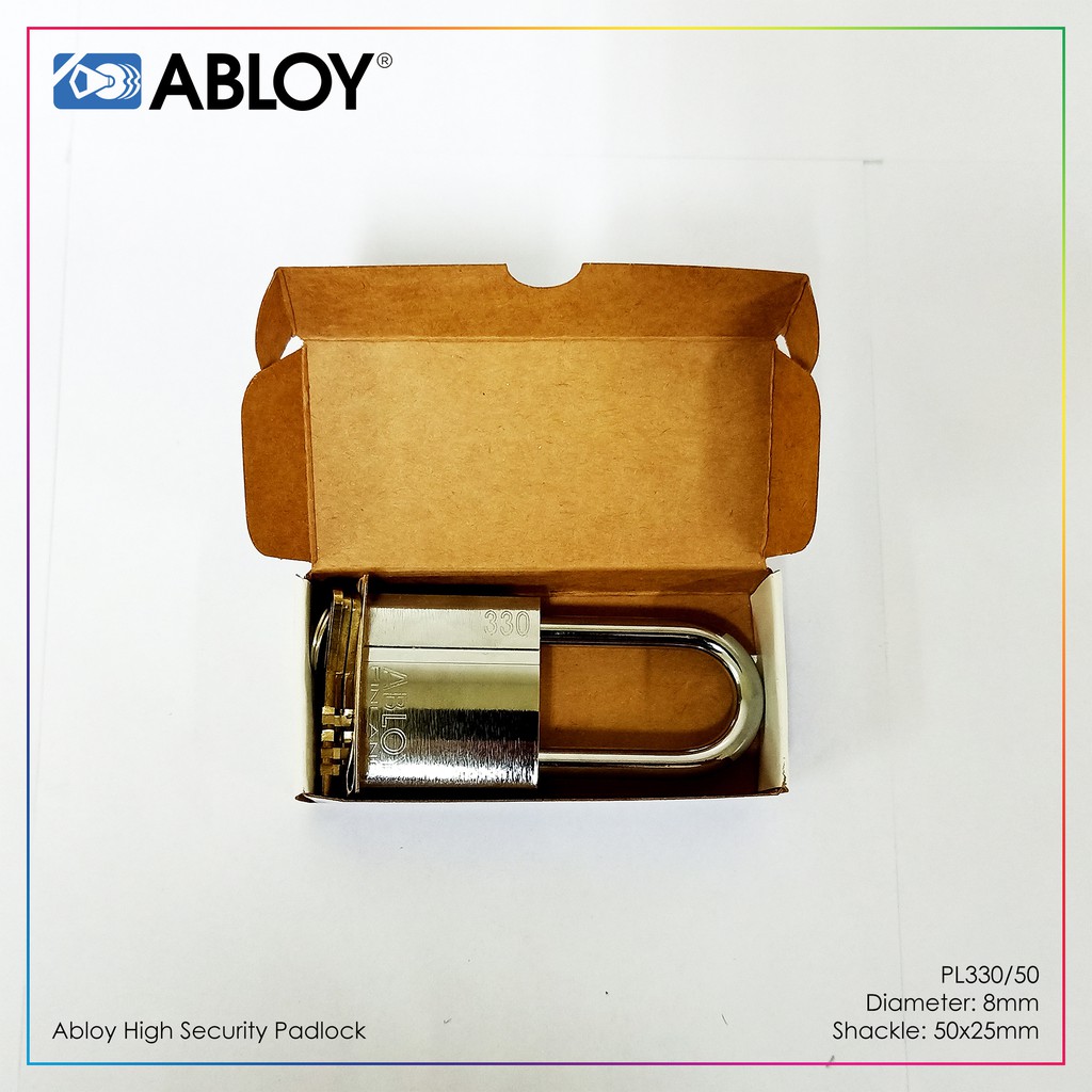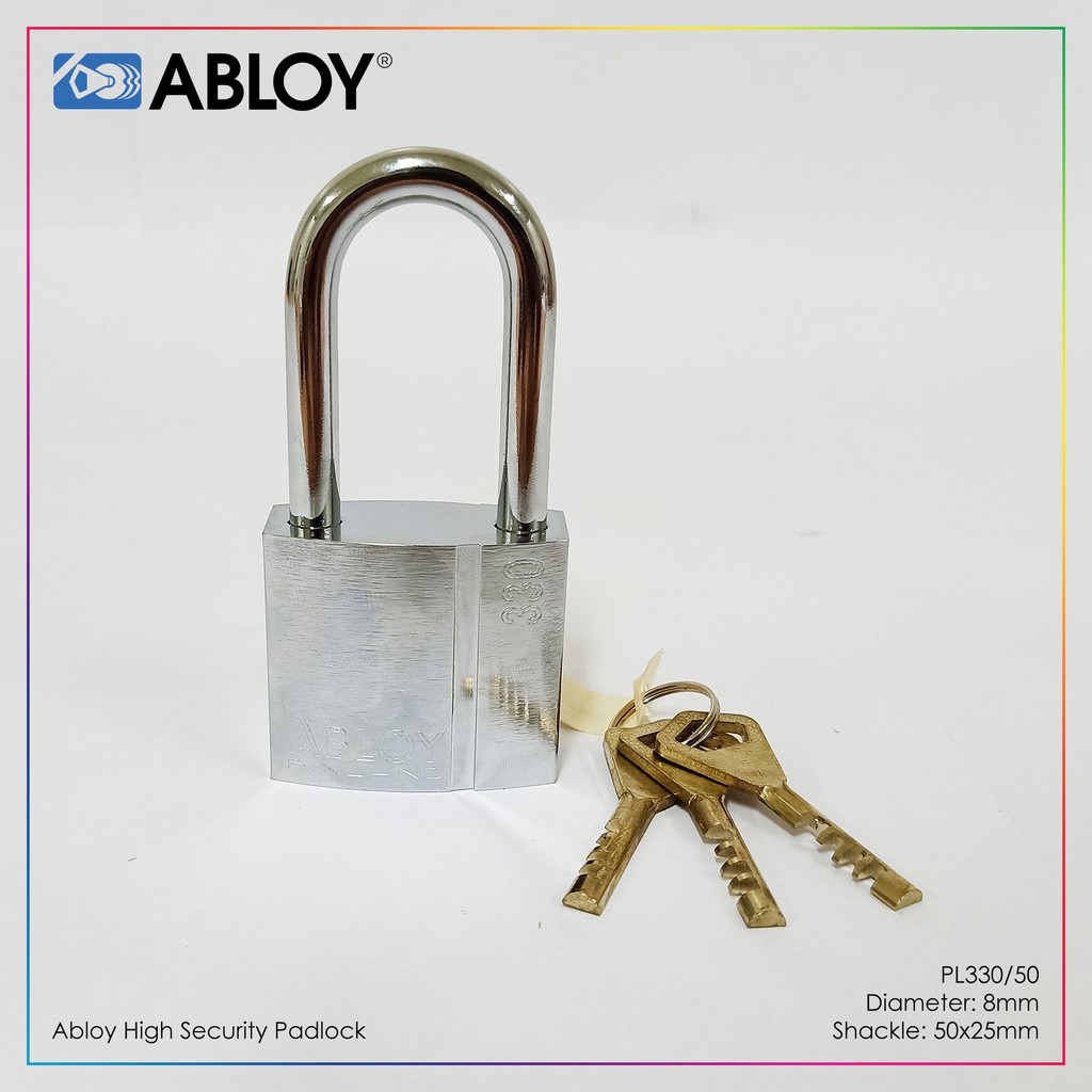 Abloy Padlock PL 330C/50 Original Made In Finland 48mm Chrome Plated Brass Body Long Shackle