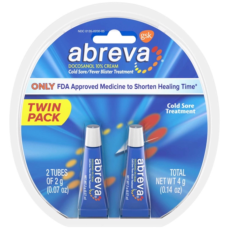 Abreva Docosanol 10% Cream Cold Sore Treatment Twin Pack