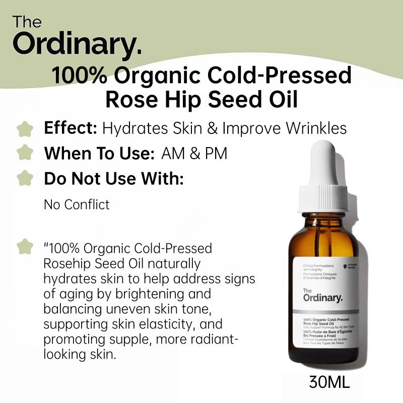 The Ordinary 100% Organic Cold-Pressed Rose Hip Seed Oil Moisturizing Essential Oil 30ml