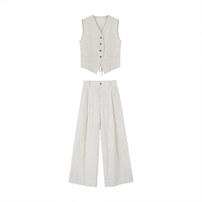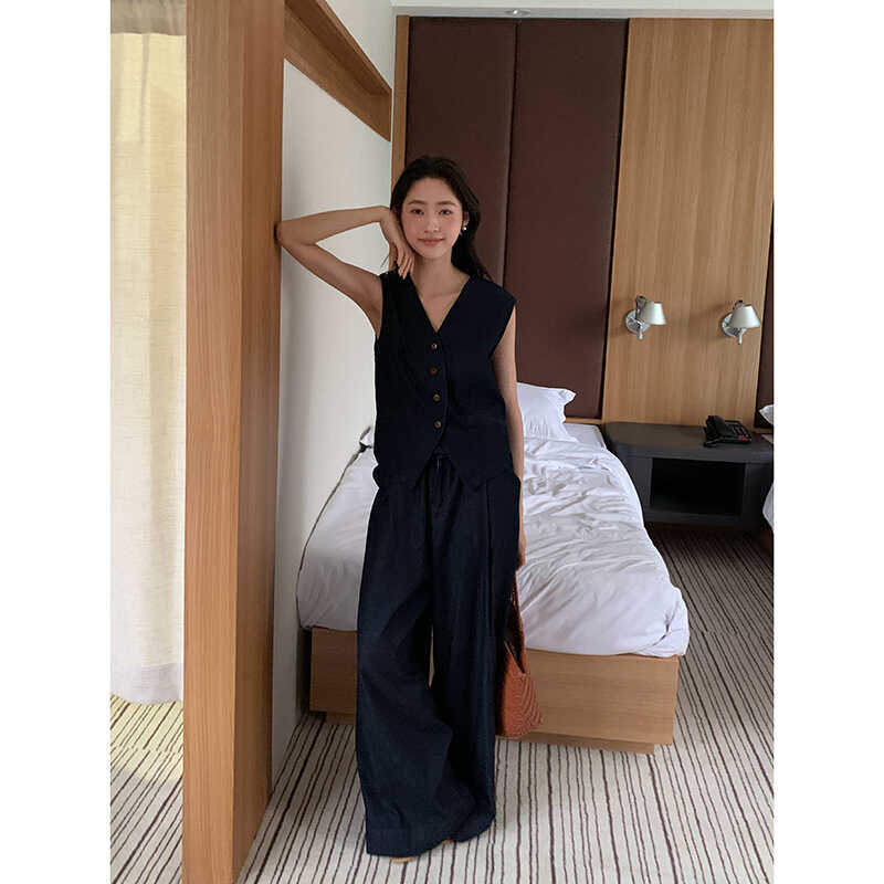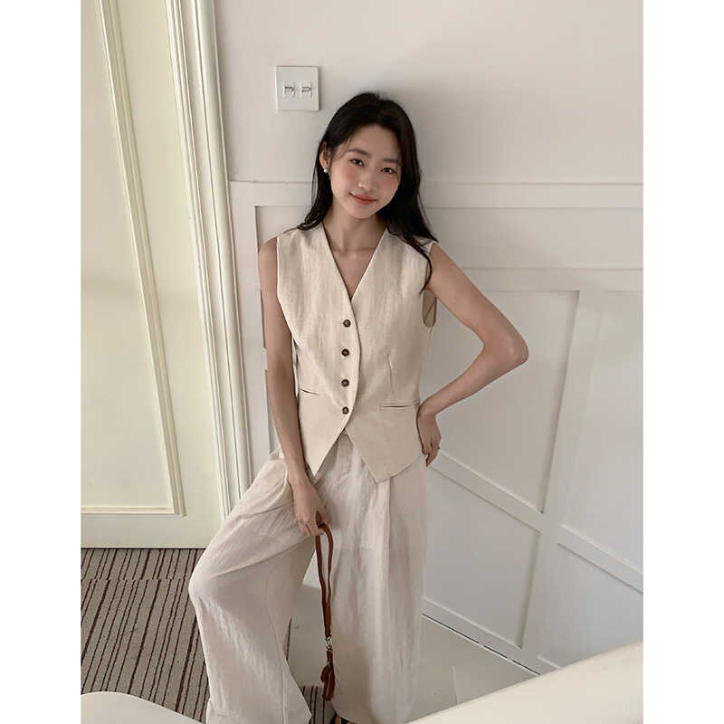 Old Money Set Korean Style Commuting Tencel Vest for Women + Summer Straight Casual Pants Two-Piece