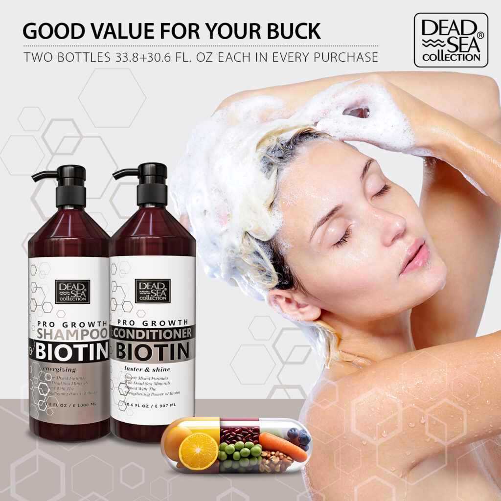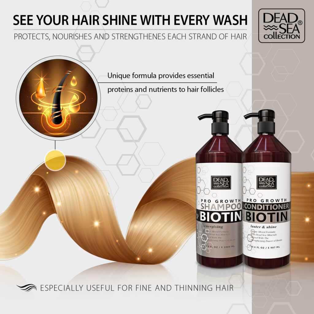 DEAD SEA COLLECTION PRO GROWTH BIOTIN (SHAMPOO/1000ML) (CONDITIONER/907ML) MADE IN ISRAEL