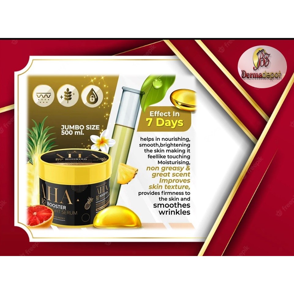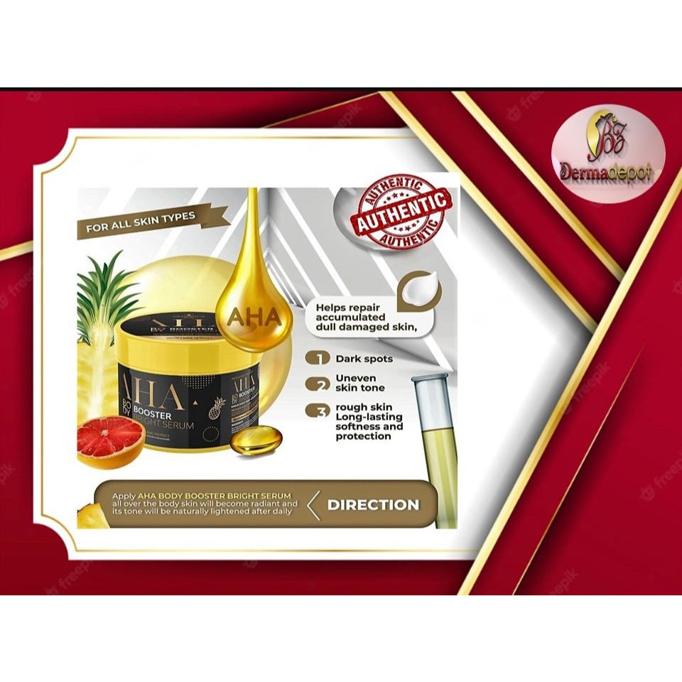 AHA BODY BOOST SERUM BRIGHT whitens repairs smoothens and protect HALF KILO per jar dermadepot