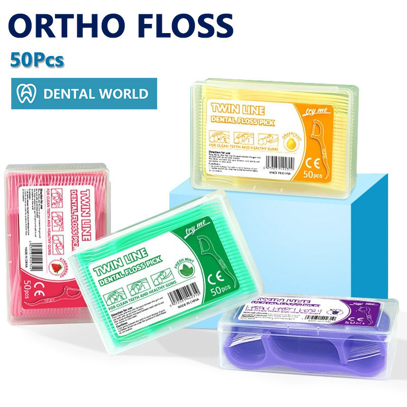 50Pcs/Box Dental Floss Stick Tooth Cleaning Interdental Brush Dental Floss Pick Oral Hygiene Care