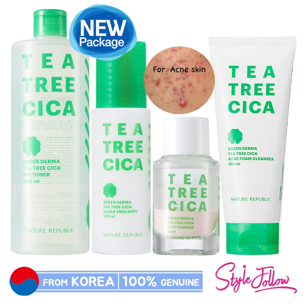 [NATURE REPUBLIC] Green Derma Tea Tree Cica (Big Toner, Soothing Cream, Spot Powder, Clear Emulsion, Acne Foam Cleanser)