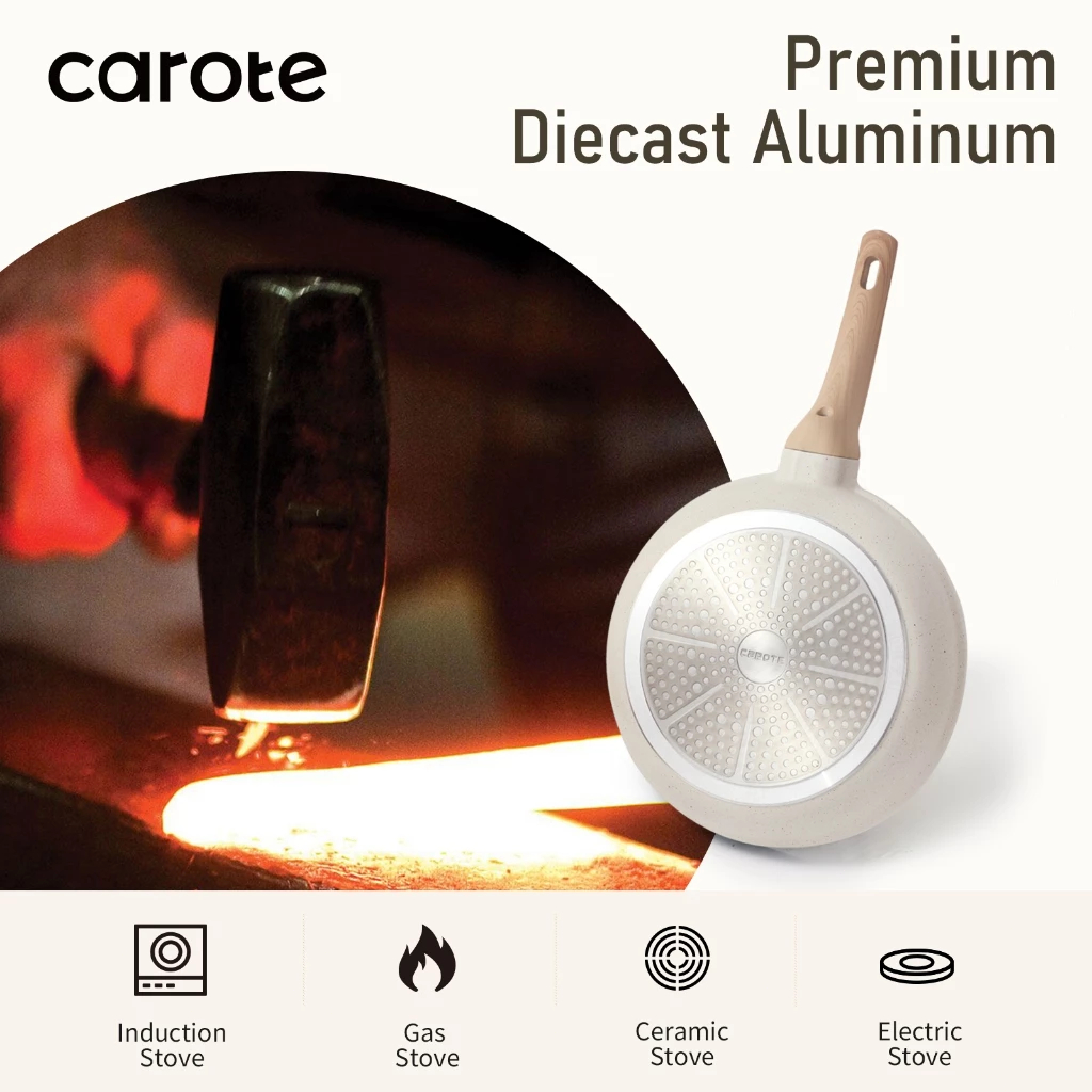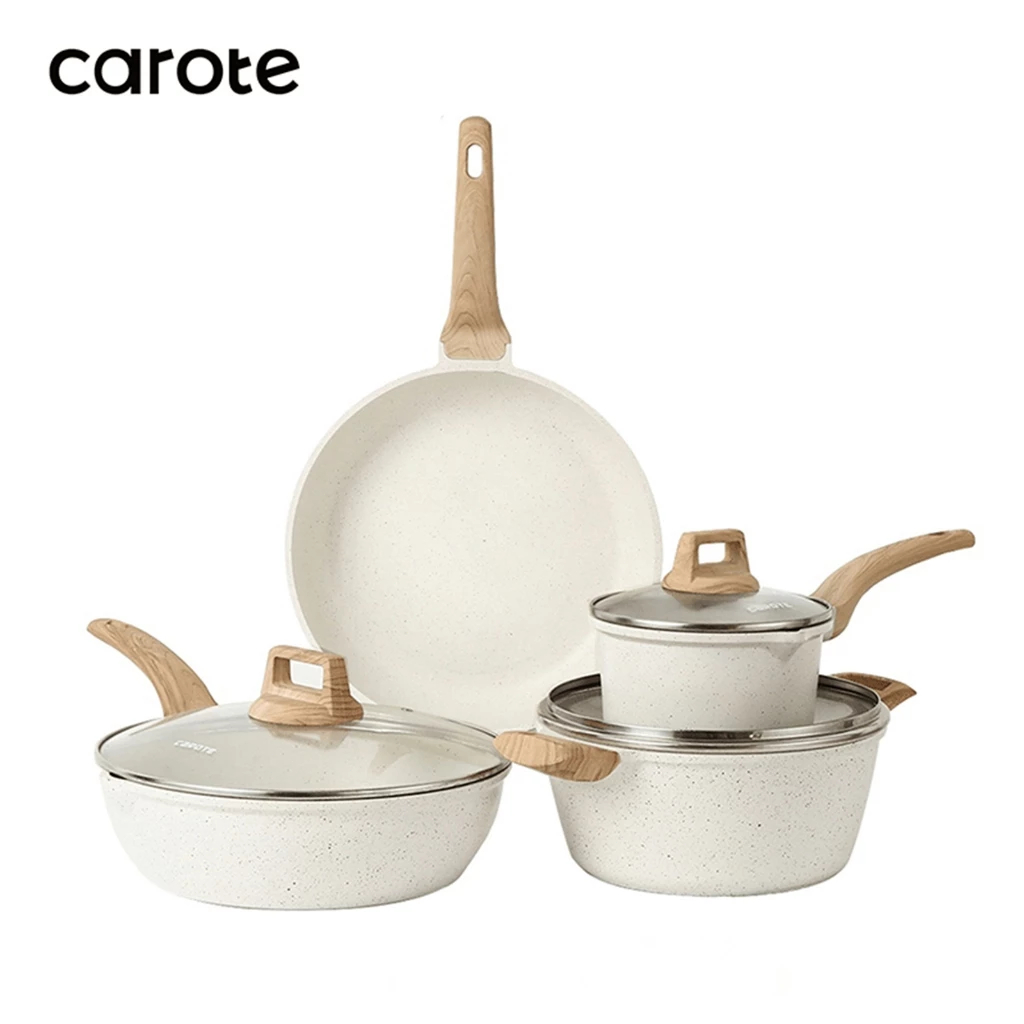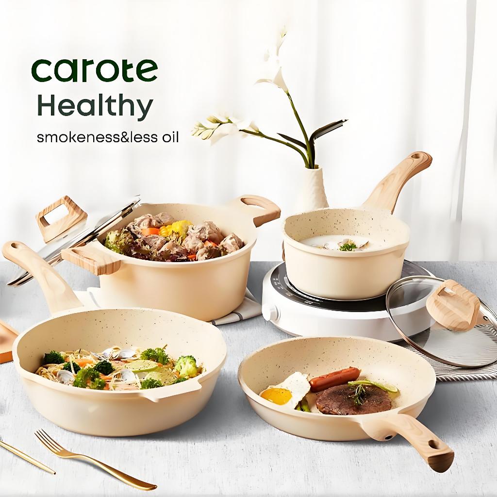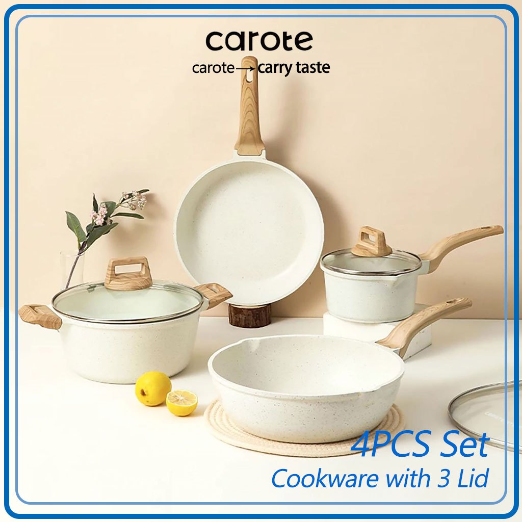Carote Non Stick Frying Pan Kitchen Cookware set 4 Pcs Kawali Wok Pot Die-Cast Suitable All Stoves