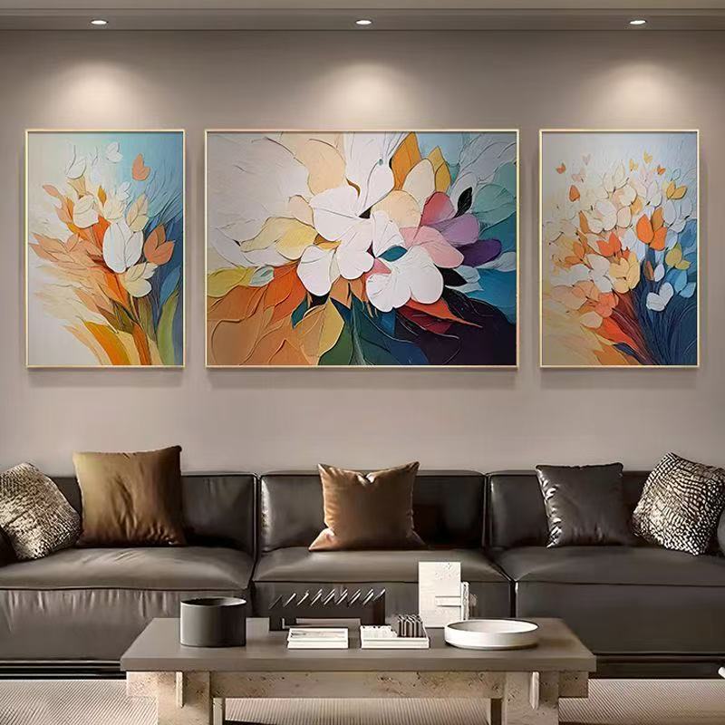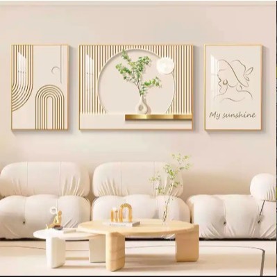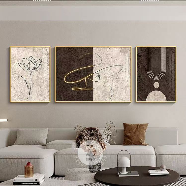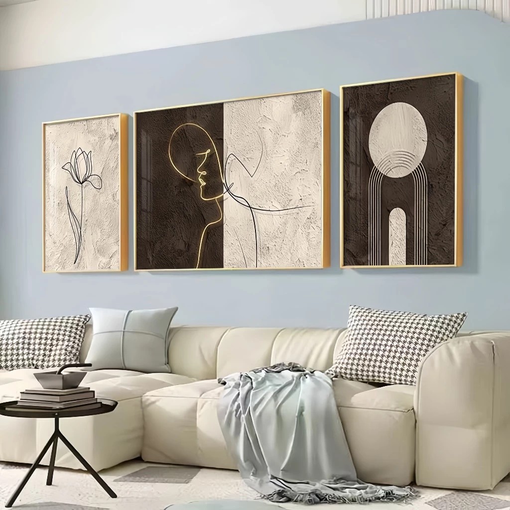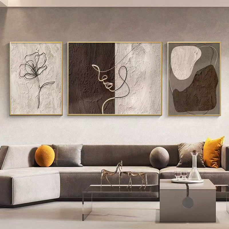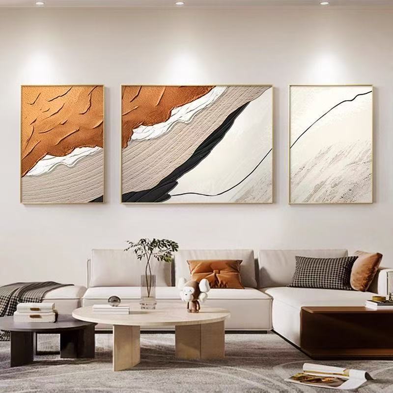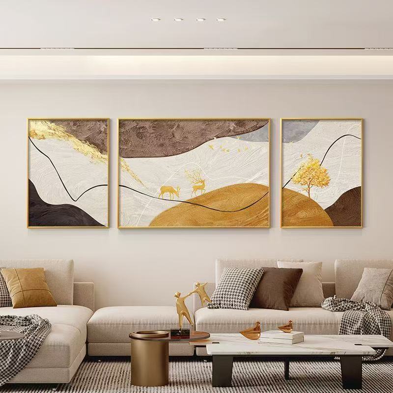 Abstract mural living room hanging home with frame decoration painting wall background triple mural