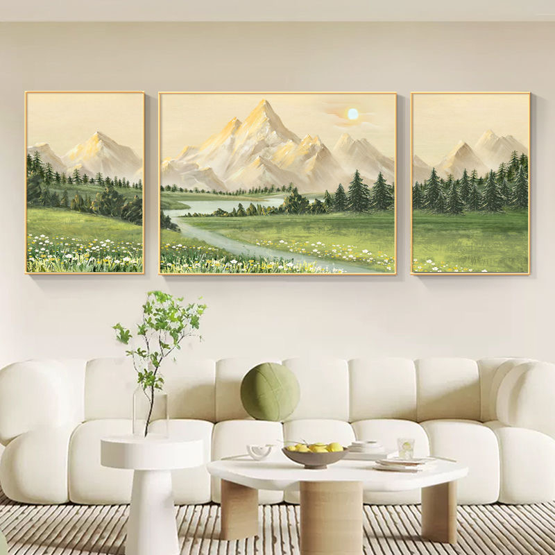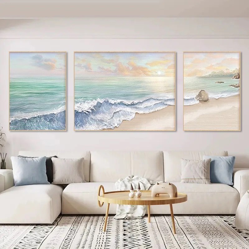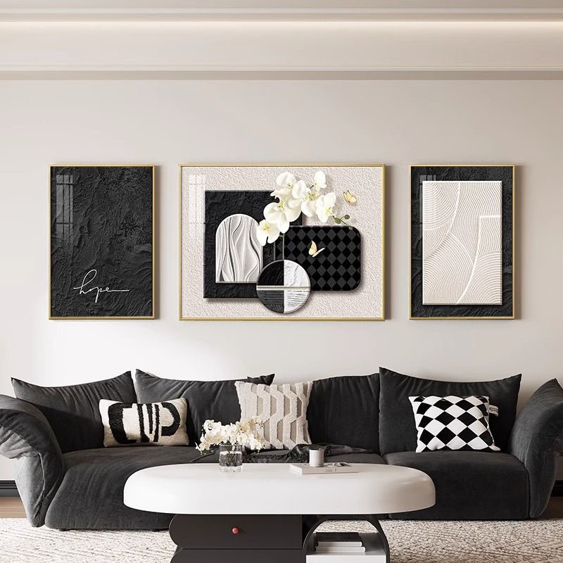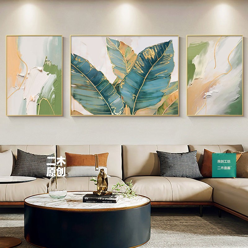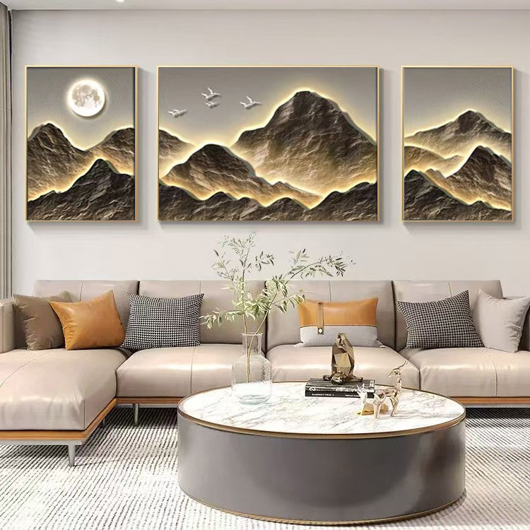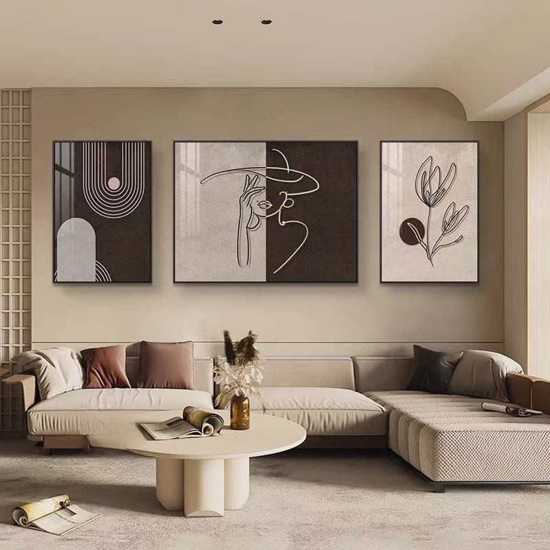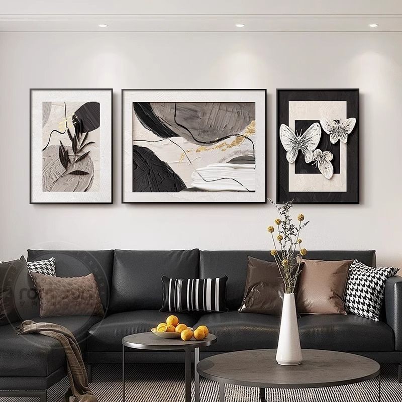 Abstract mural living room hanging home with frame decoration painting wall background triple mural