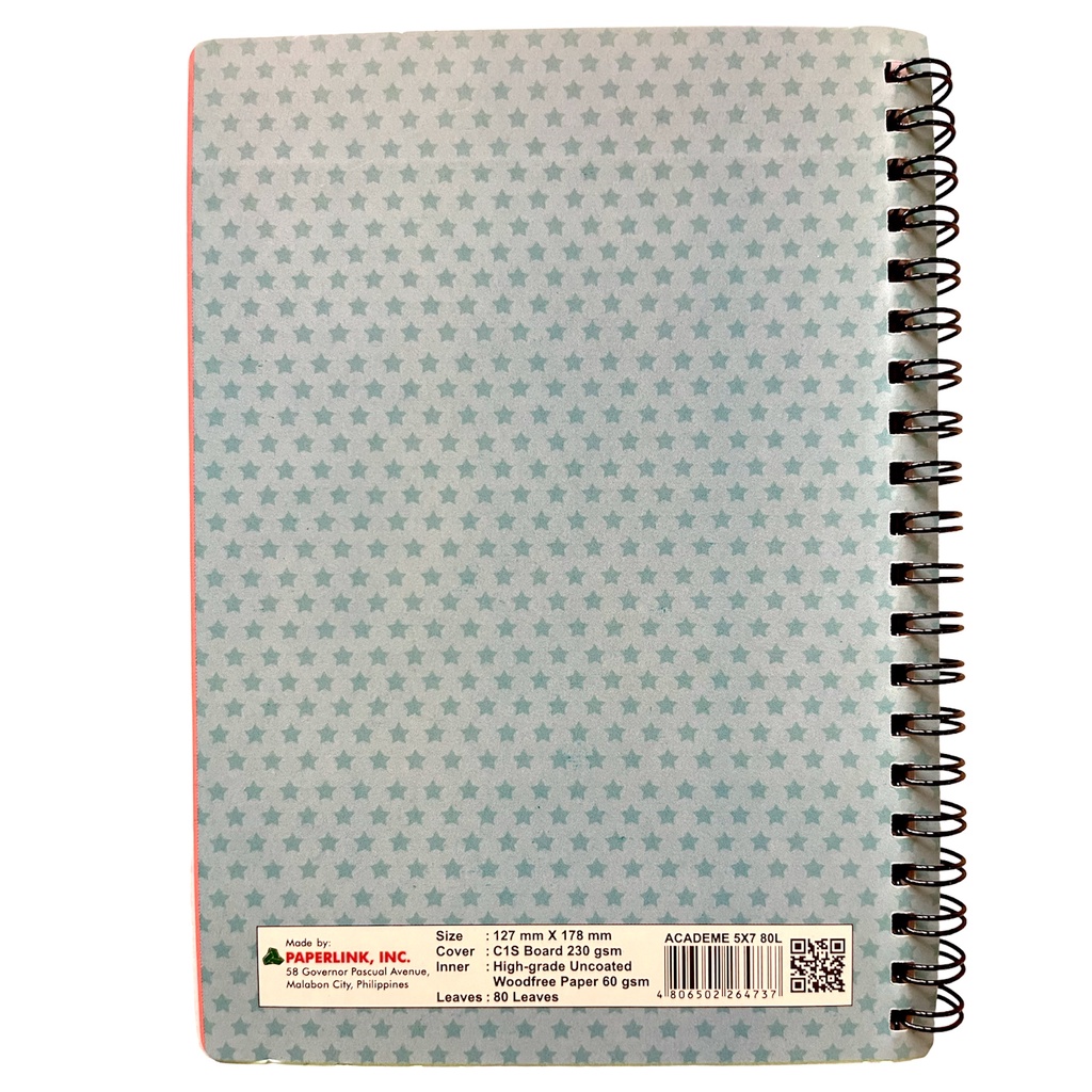 Academe Premium Small Spiral Notebook l 5" X 7" l 80 Leaves l Sold per Piece l 60GSM