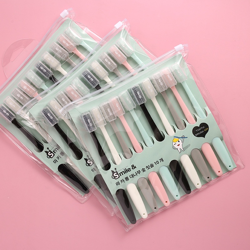 10pcs Macaron Toothbrush Soft Bristles Toothbrush Family Toothbrush Set With Protective Cover