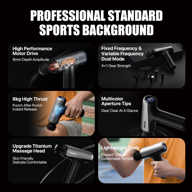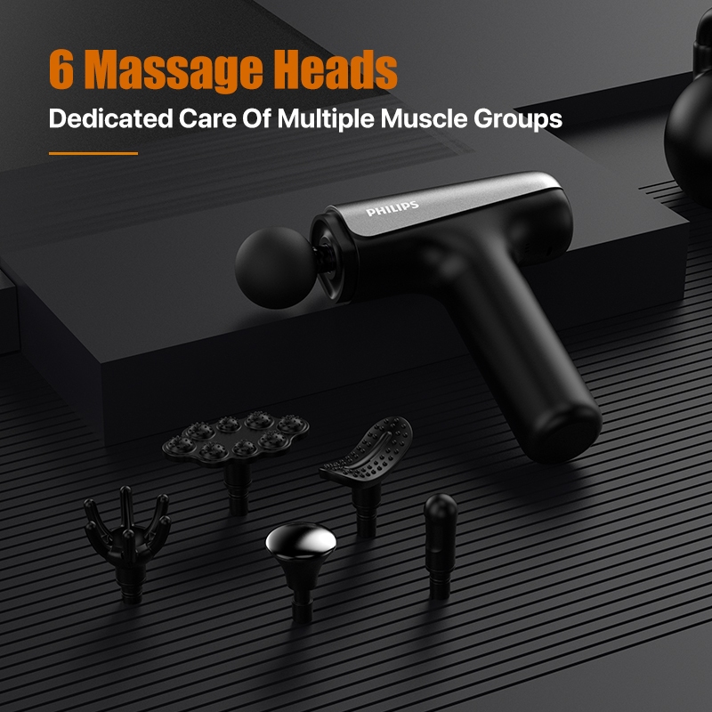 Philips Massage Gun Electronic Massager Vibration Fascial Gun Muscle Relaxation 3 & 6 Massage Heads