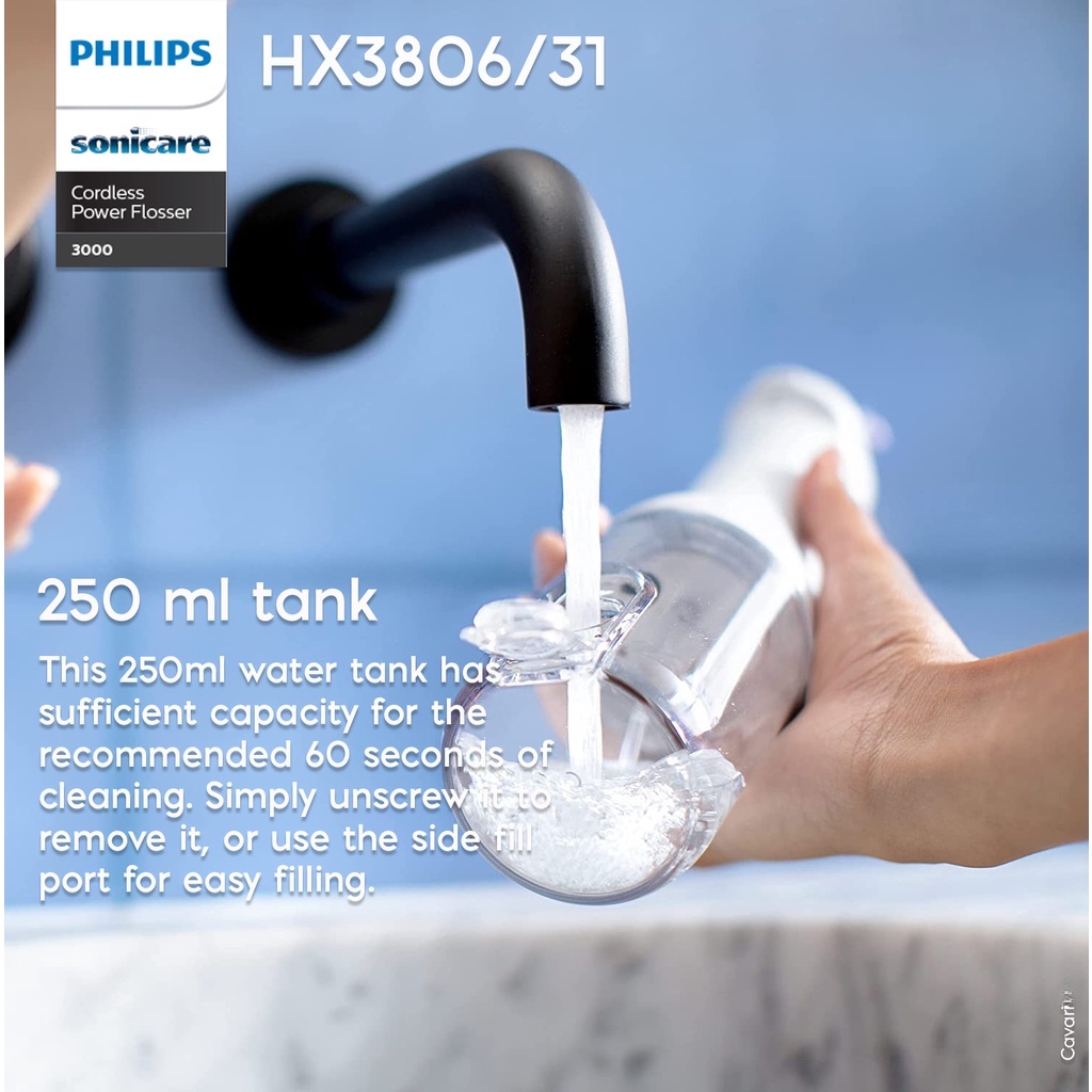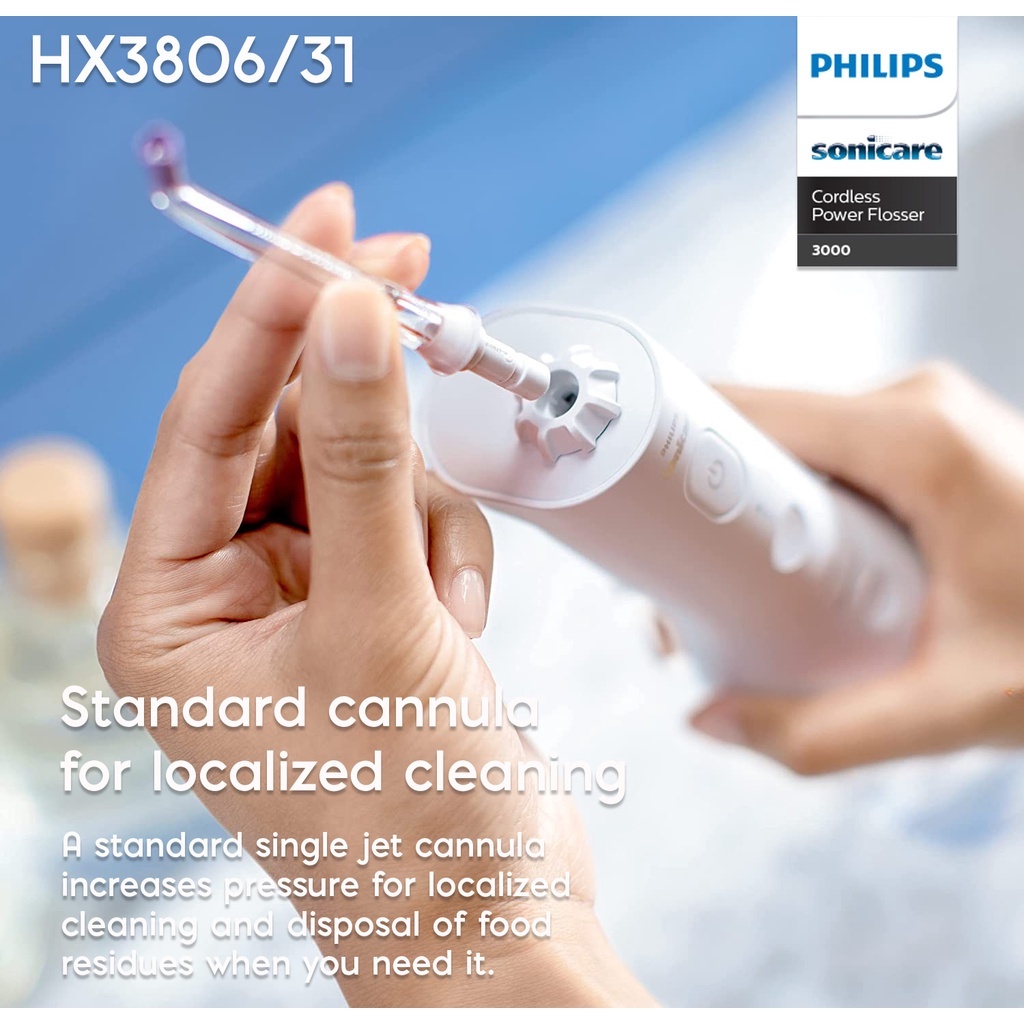 Sonicare HX3826 Cordless Power Flosser 3000 Oral Irrigator w Quad Stream Technology & Pulse Waves