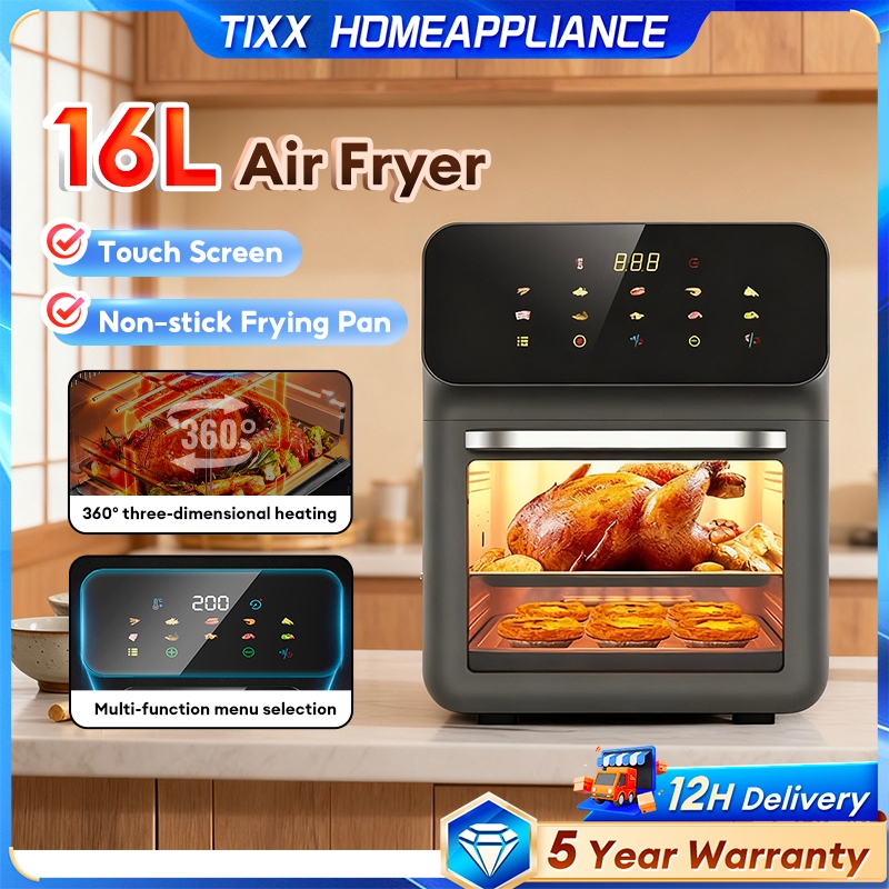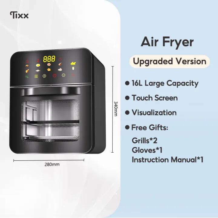 Tixx Air Fryer 16L Large Capacity Multifunction Fryer with Transparent Window Viewing Touch Screen