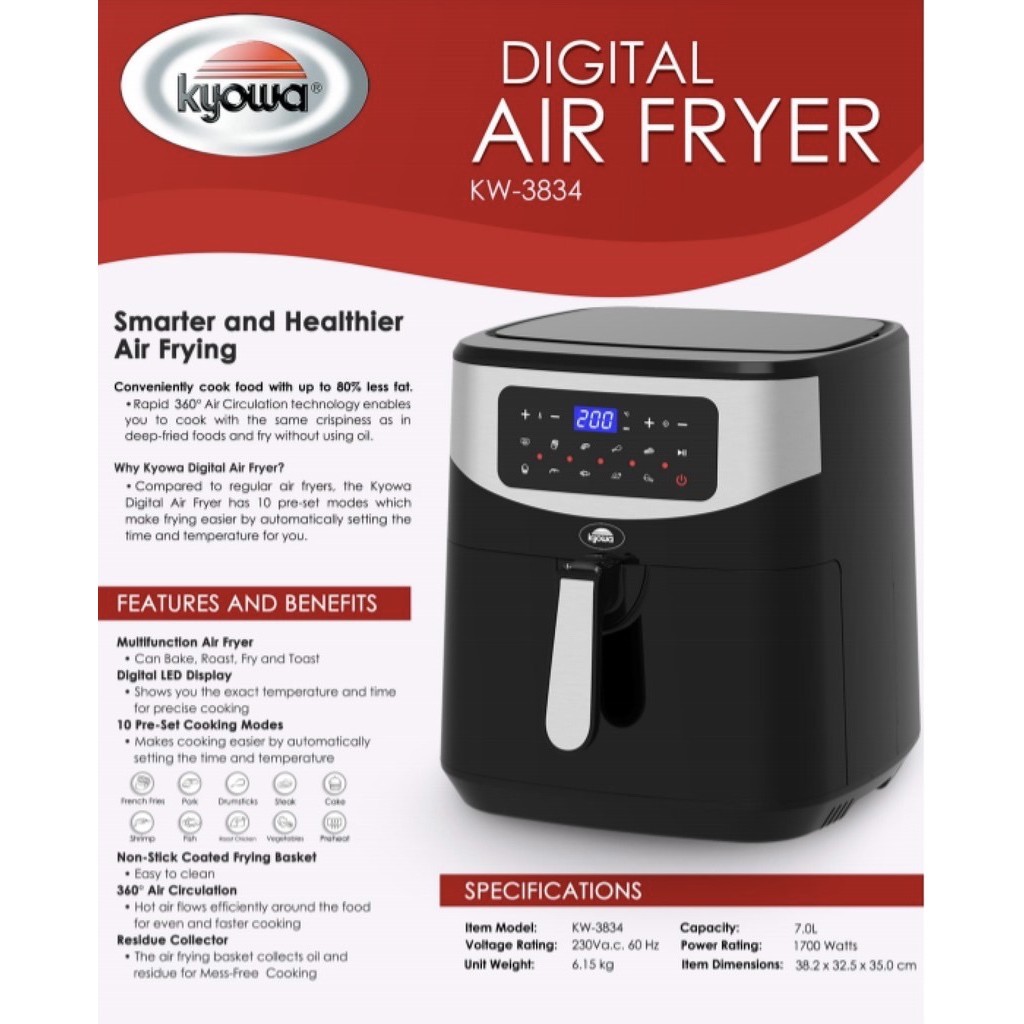 Kyowa(W|KW-3833/KW-3834|Kx>Air Fryer 5.8L/7L Digital with Pre-set modes KW3833/KW3834(F((Houseware-