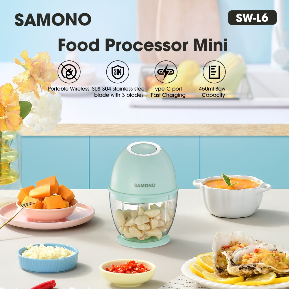 SAMONO L6/L7 Portable Mini Food Processor for Spices & Veggies (250–450ML)