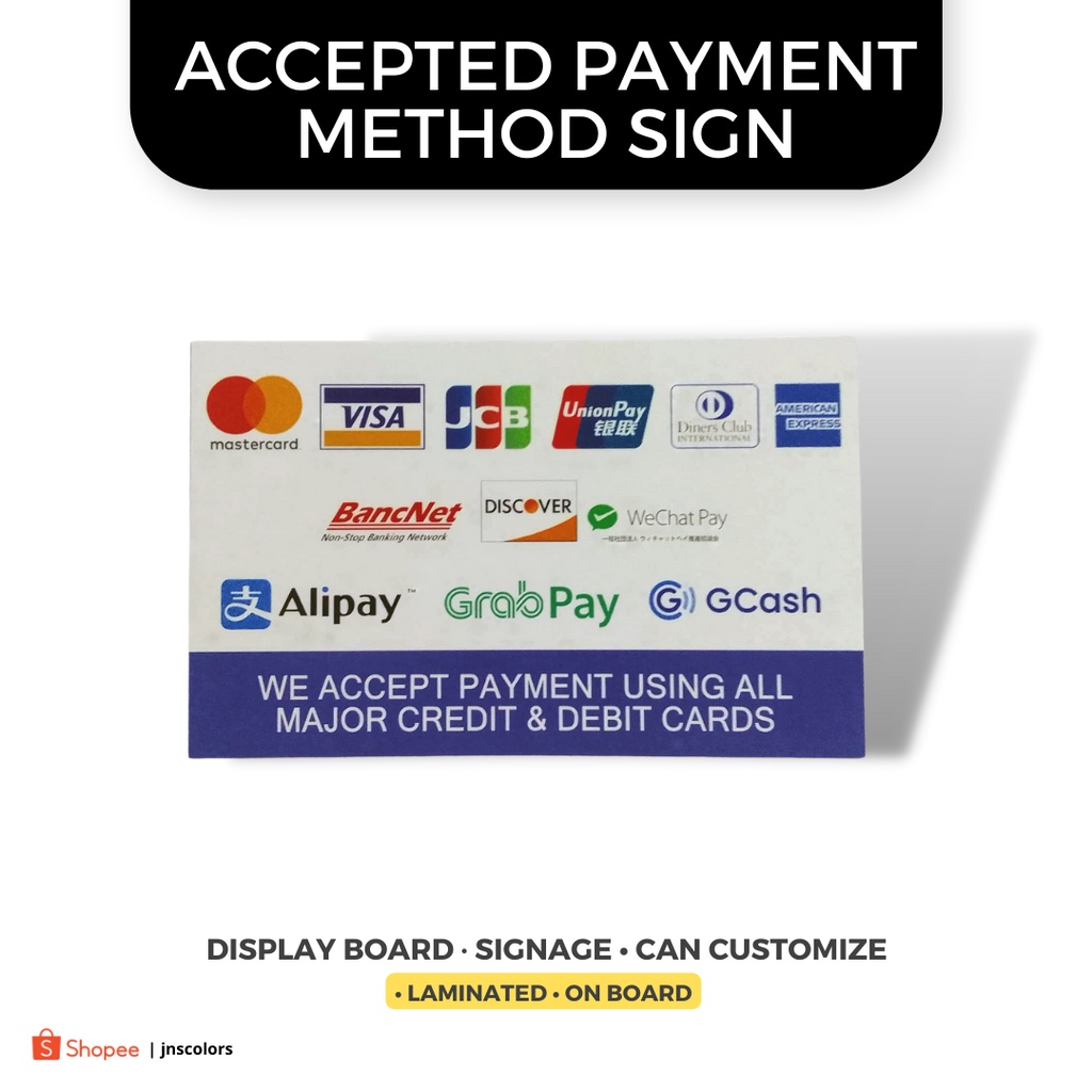 Accepted Payment Method Display Board